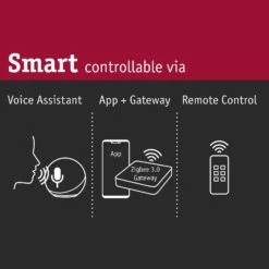 – intelligente Lichtsteuerung Option a: ZigBee-Einbindung über Bridge und Router, wie zum Beispiel die Philips Hue Bridge (siehe Zubehör); hierdurch wird die Steuerung vor Ort oder von unterwegs aus via Hue-App und die Möglichkeit zur Sprachsteuerung über Amazon Alexa, Apple HomeKit (Siri) und Google Assistant möglich.