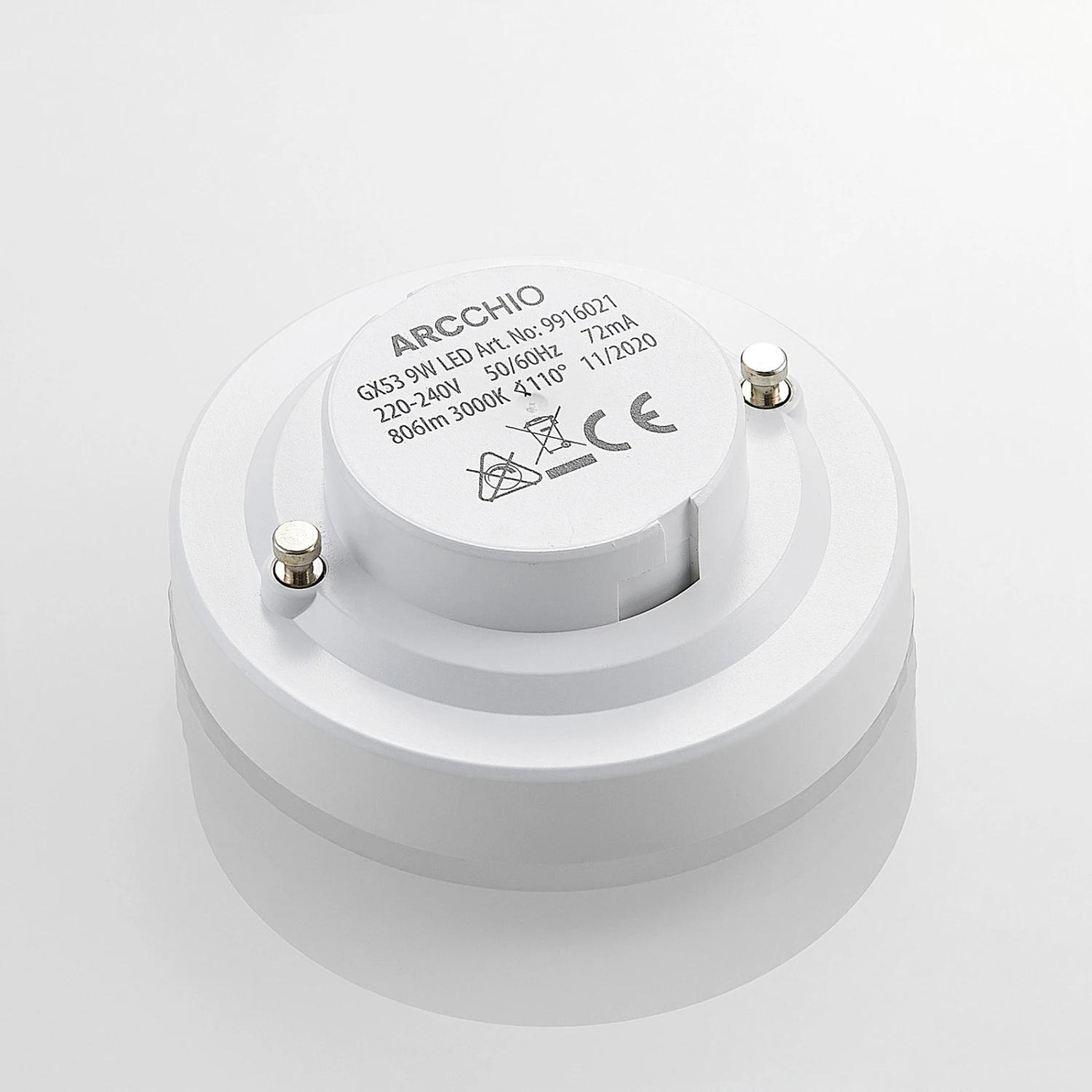 GX53 LED-Lampe 8W, warmweiß 3.000 K, nicht dimmbar mit opaler Abdeckung, 10er-Set