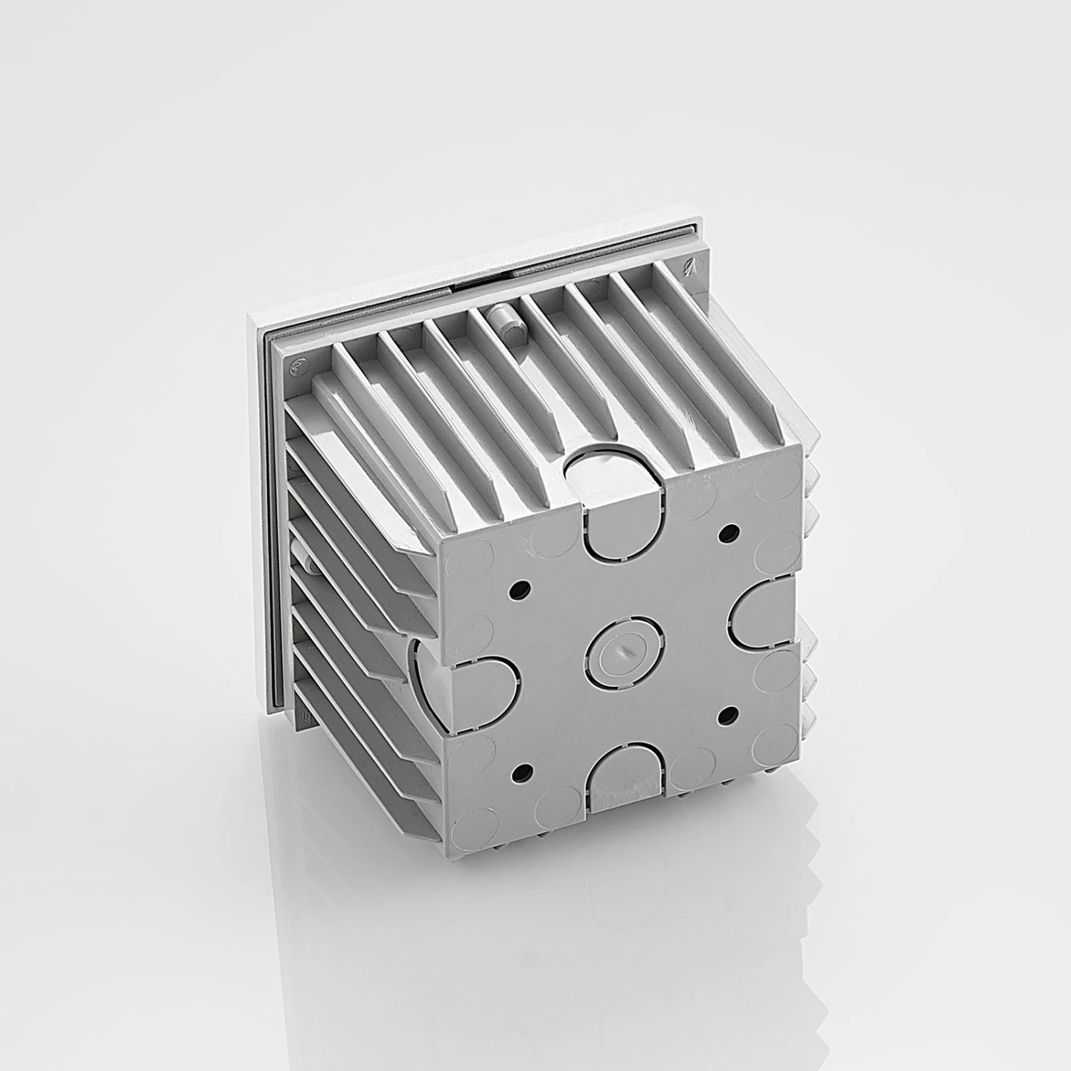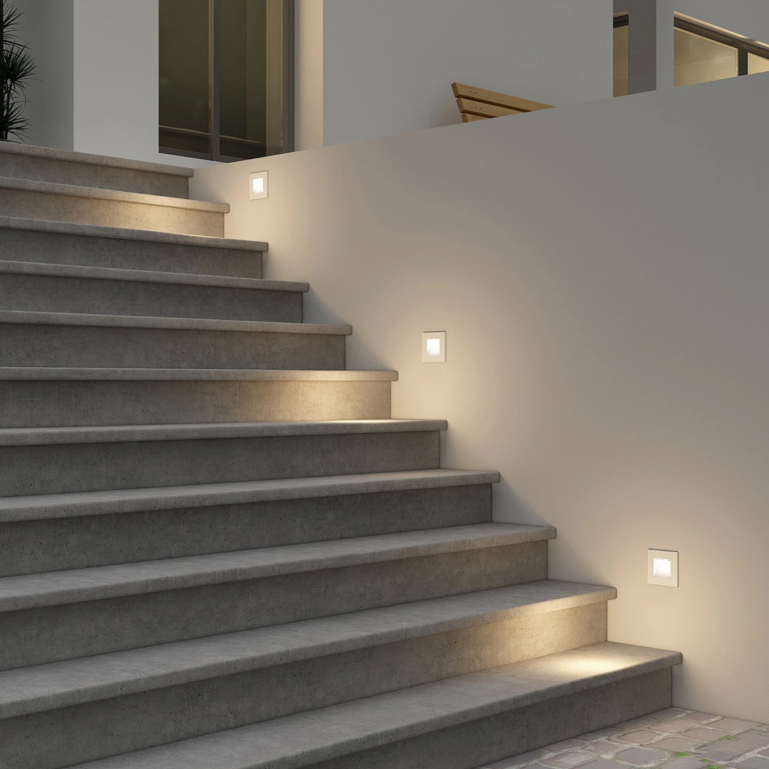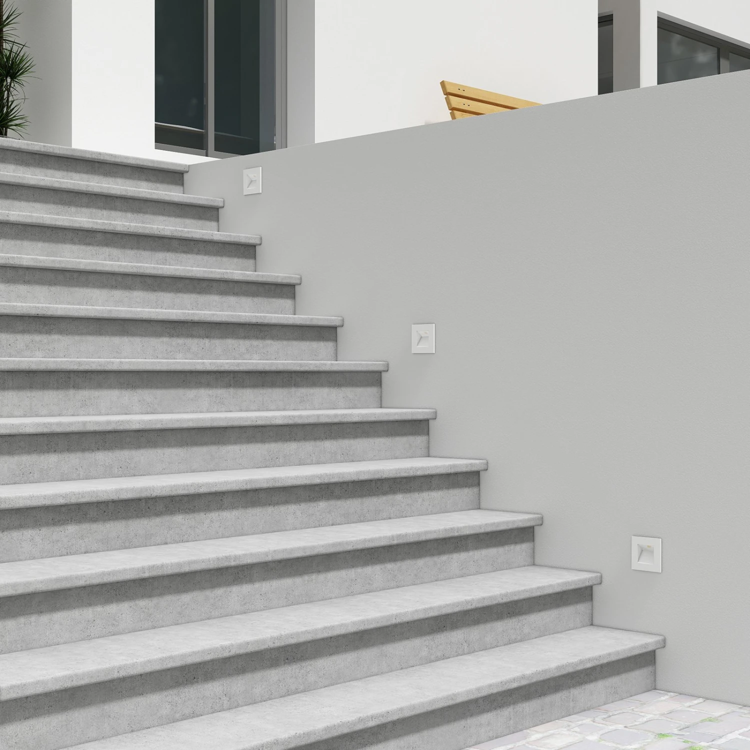Zamo ist aus Aluminium hergestellt und besitzt eine eckige Form. Ihr schlichtes Design wird mit einer weißen Farbgebung abgerundet, die schlichte Akzente an Wohnungswänden setzt. Der Körper der Wandeinbauleuchte verschwindet fast ganz in der Wand, nur ihr Kopf bleibt an der Oberfläche zurück. Darüber hinaus kann sie mit entsprechenden Leuchtmitteln bestückt werden, die eine freie Wahl der Lichtfarbe und die Anpassung der Beleuchtung an die persönlichen Bedürfnisse möglich machen. Die Wandeinbauleuchte Zamo ist mit der Schutzart IP65 ausgewiesen, was bedeutet, dass sie nachweislich gegen Staub und Strahlwasser geschützt ist. Aus diesem Grund kann sie auch im Außenbereich installiert werden.