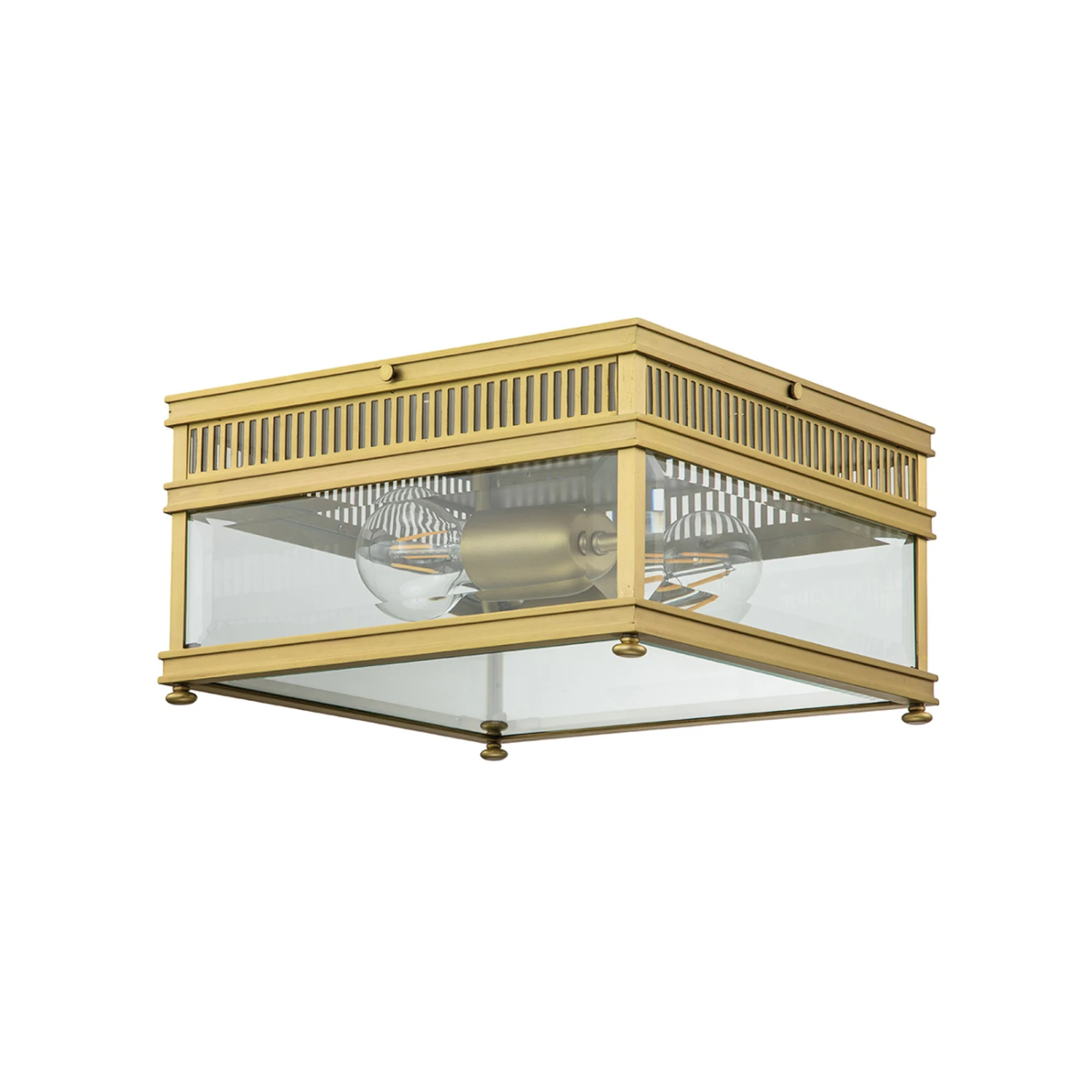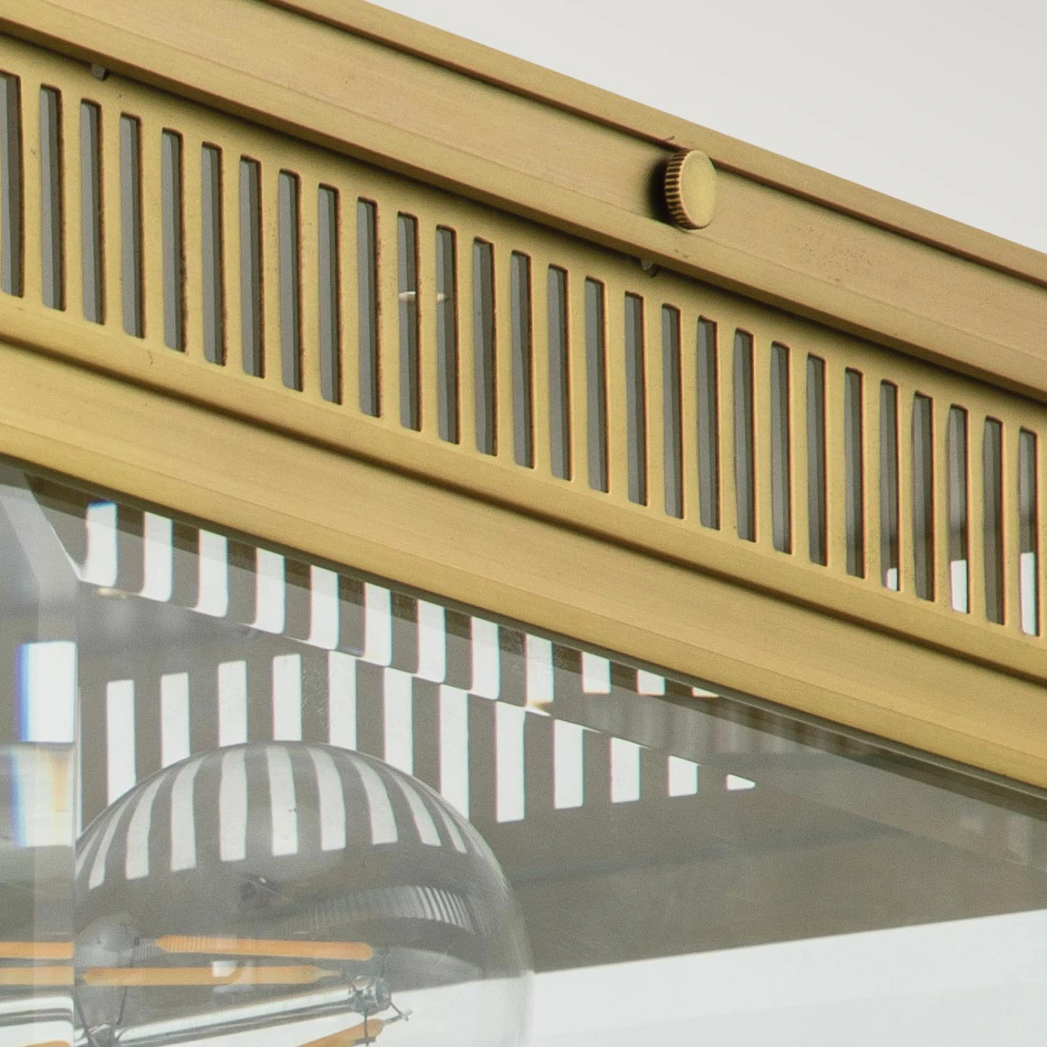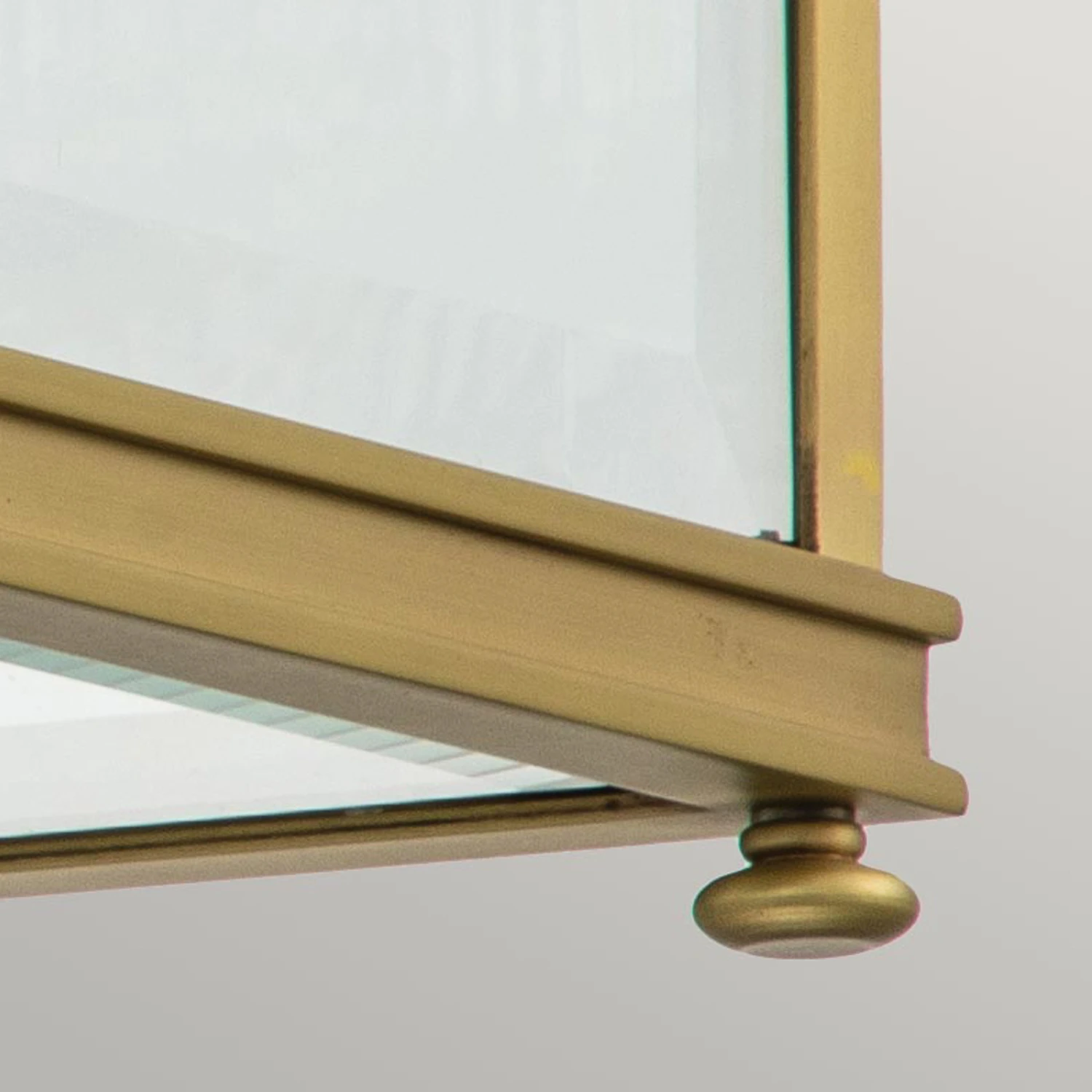 Holborn ist eine sehr ästhetisch gestaltete Deckenleuchte aus robustem Messing für den Außenbereich, wie z. B. die überdachte Terrasse. Durch das klare Glas bleibt der Blick auf die verwendeten Leuchtmittel (nicht enthalten) frei, weshalb es sich empfiehlt, auf dekorative Filament- oder Rustikalampen zurückzugreifen.