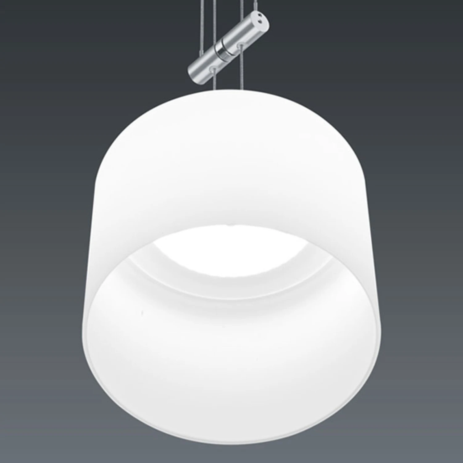 Die zweiflammige LED-Hängeleuchte Grazia besteht aus zwei identischen Lampenschirmen, die in ihrer Abhängung individuell verstellt werden können. Die Lampenschirme bestehen aus mattem Glas und sind mit der „vertical dimm“-Technik ausgestattet. Diese Technik ermöglicht es, die Lampe durch Neigen des Schirmes in der Helligkeit zu dimmen. Die Besonderheit dabei ist, dass sich die Lichttemperatur beim Dimmen der Helligkeit mit verändert. Beim sogenannten „warm dimming“ ändert sich mit schwächer werdendem Licht auch die Lichtfarbe von Warmweiß (2.700 K) zu Kerzenlicht (2.200 K). So entsteht ein besonders gemütliches Licht, das den Ausklang eines schönen Tages abrundet.