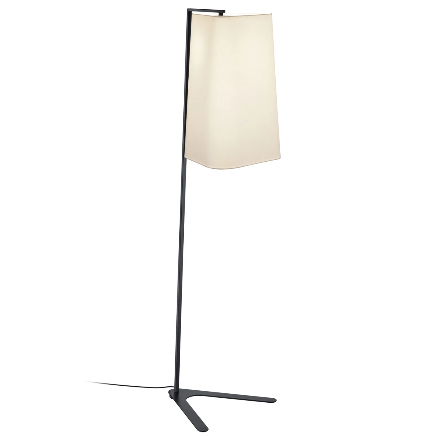 Die Stehleuchte 23.155 überzeugt mit klaren Formen, zurückhaltender Farbgebung und elegantem Gesamtbild. Zweifelsohne fällt der große, konische Schirm aus Leinen sofort ins Auge. Er ist nach unten geöffnet, wodurch das Licht in Richtung Bodenfläche direkt austritt. Rundherum gelangt ein sehr diffuses Licht durch das Stoffgewebe und verleiht dem weißen Farbton des Schirmes eine sanfte Wärme, die in den Raum abgegeben wird. Das Gestell ist ganz in Schwarz gehalten und begeistert mit seinem speziell geformten Fuß. Dieser erinnert an einen Boomerang und kann dank der flachen Bauweise auch unter Möbeln Platz finden. Die Stehlampe eignet sich ideal zur Bereichs- und Akzentbeleuchtung im modernen Wohnraum und schafft eine angenehme Atmosphäre. Ob im Hotelzimmer oder heimischen Wohnzimmer ist dabei nebensächlich.