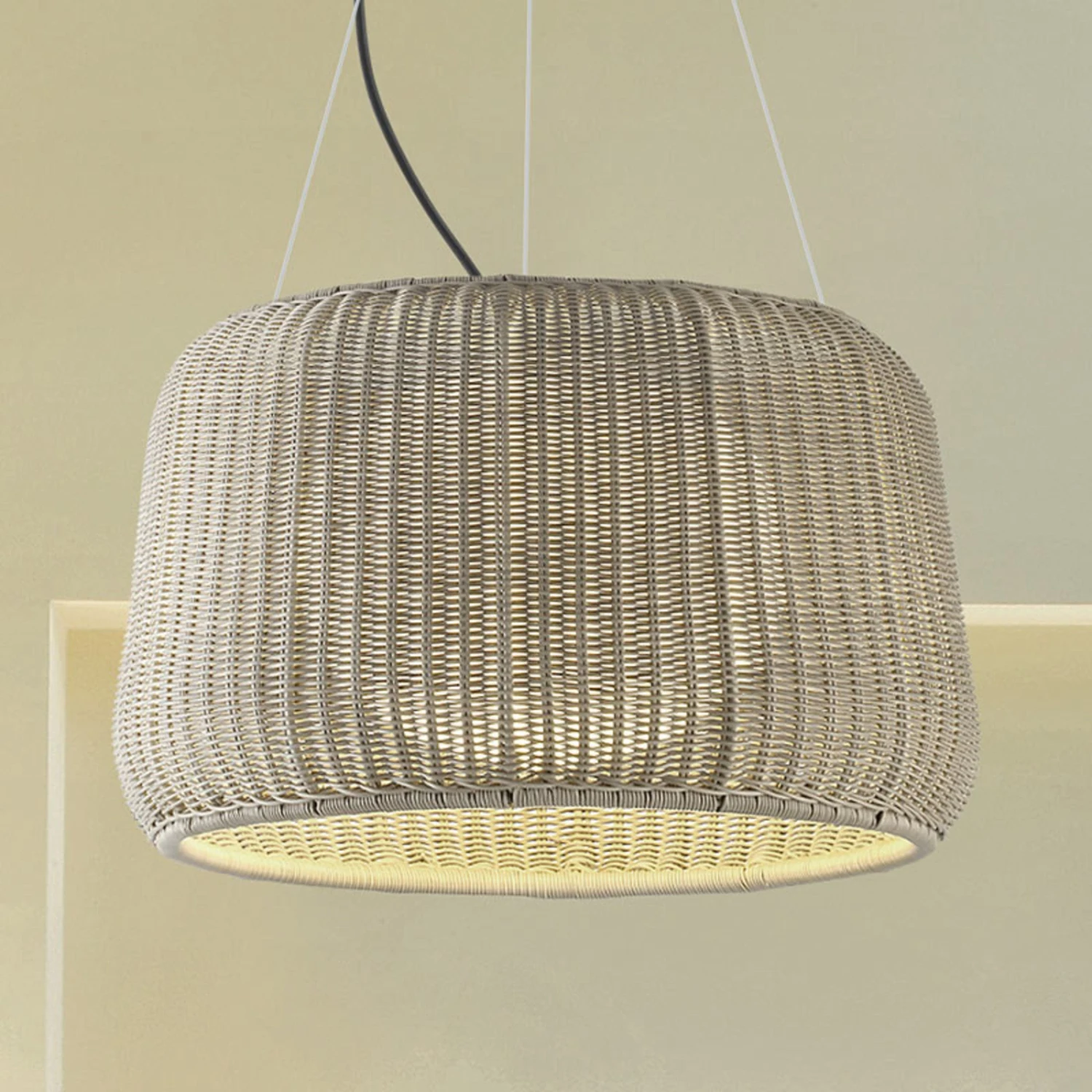 In mühevoller Handarbeit entstand der Schirm dieser prachtvollen Außenhängeleuchte, die mit ihrem synthetischen Korbgeflecht jeglichen Witterungen trotzt. Sie verleiht nicht nur privaten Außenanlagen Stil und Charme, sondern vor allem auch gewerblichen Bereichen, wie etwa Cafés, Restaurants o. Ä. Bereits ausgeschaltet sorgt sie durch ihre anspruchsvolle Gestalt für mediterranes Flair, das eingeschaltet durch die im Inneren verbaute Polyethylen-Ellipse wunderbar verstärkt wird. Denn diese beherbergt nicht nur das einzusetzende Leuchtmittel, sondern sorgt zudem für eine blendfreie sowie allseitige Lichtausstreuung.