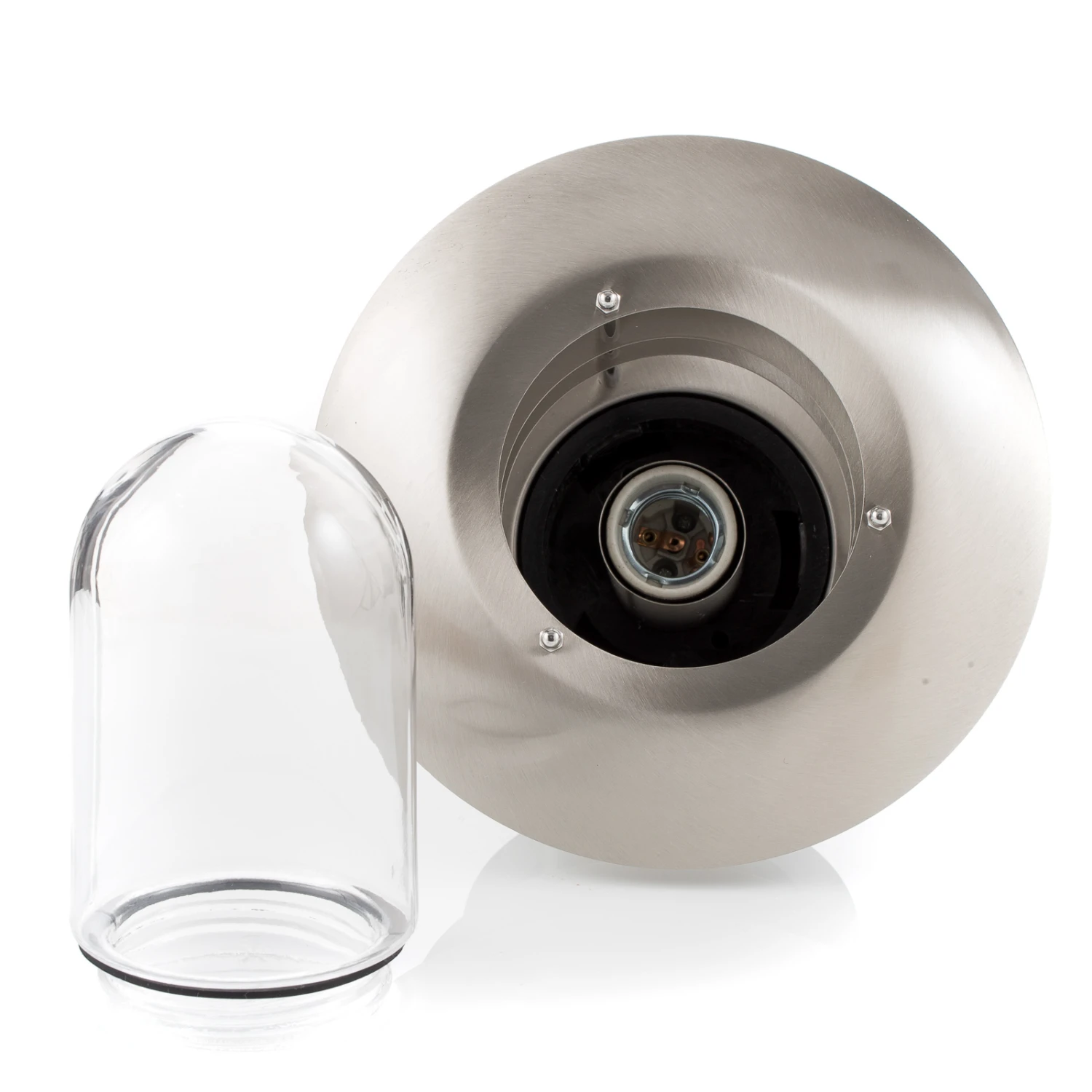 Das besonders wetterbeständige Design dieser Leuchte ist in Skandinavien ein Klassiker. Für den Außenbereich bietet sie eine gleichmäßige Beleuchtung, ohne zu blenden. Eine stabile Kuppel aus Glas schützt die Technik vor Wind und Wetter. Die Leuchte kann auch mit Energiesparleuchtmitteln betrieben werden und erfüllt den hohen Standard des IP44-Schutzgrads für Wetterbeständigkeit.