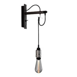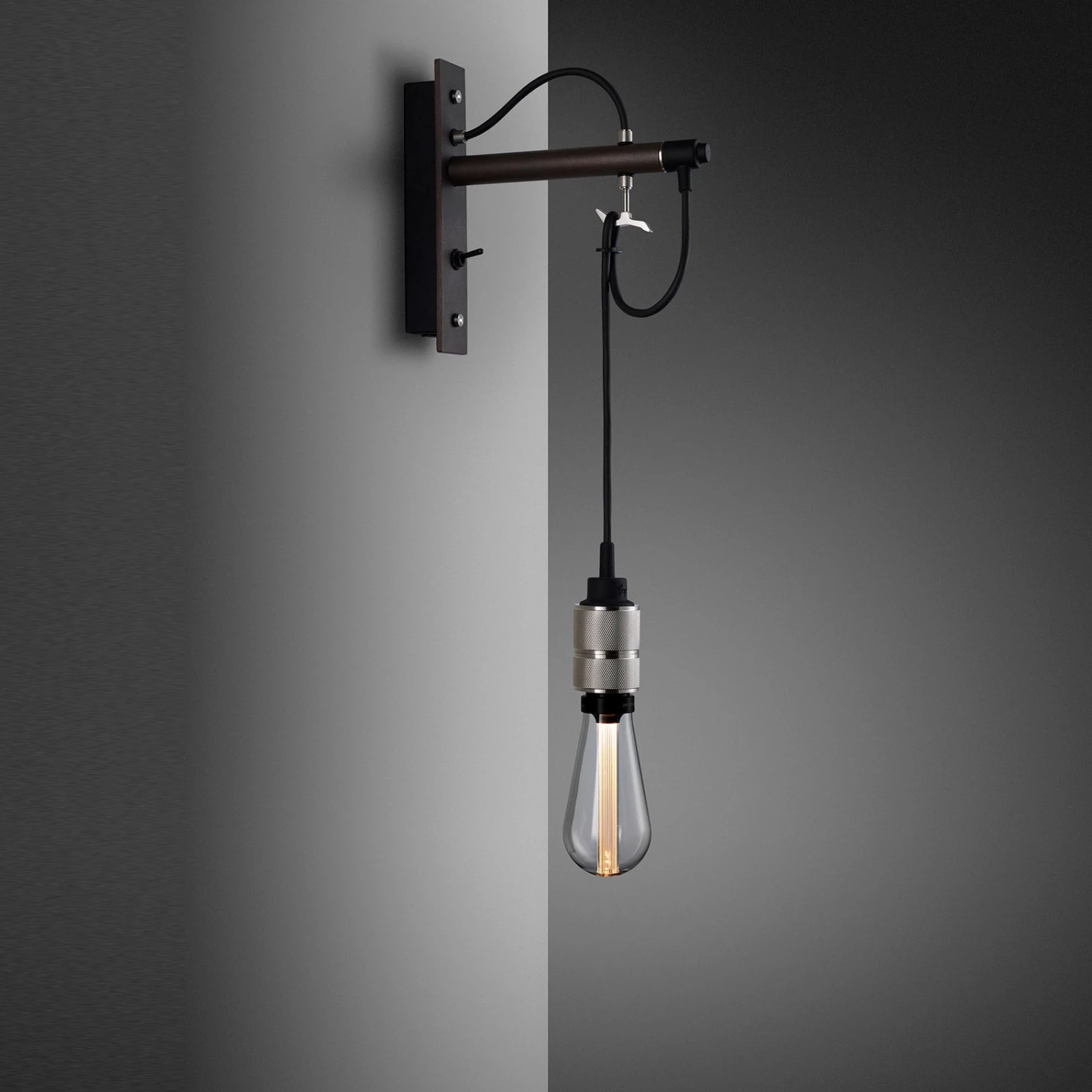 Dieser Lichtspender ist offen und reduziert gestaltet und wartet zugleich mit technischer Raffinesse auf. Hooked Wall nude besteht aus einer rechteckigen Wandhalterung mit sichtbaren Schrauben und einem Schalter, einem Ausleger, einem 45 cm langen Kabel und einer daran hängenden Fassung. Die festen Bauteile sind auch aus massivem Metall gefertigt. Besondere Merkmale sind zum einen die Aufhängung der Lampenfassung an einem Haken, der unten am Ausleger befestigt ist, und zum anderen die technisch wirkende Optik mit einer Fassung, die durch das Kreuzrändelmuster im Diamantschliff an eine Schraubverbindung erinnert. Die Abhängung lässt sich ganz nach Belieben variieren. Mit einem dekorativen Leuchtmittel ausgestattet, entfaltet die Leuchte ihre volle Wirkung. Eine passende Lampe, die vom Hersteller speziell entworfen wurde, kann über das Zubehör mitbestellt werden.
