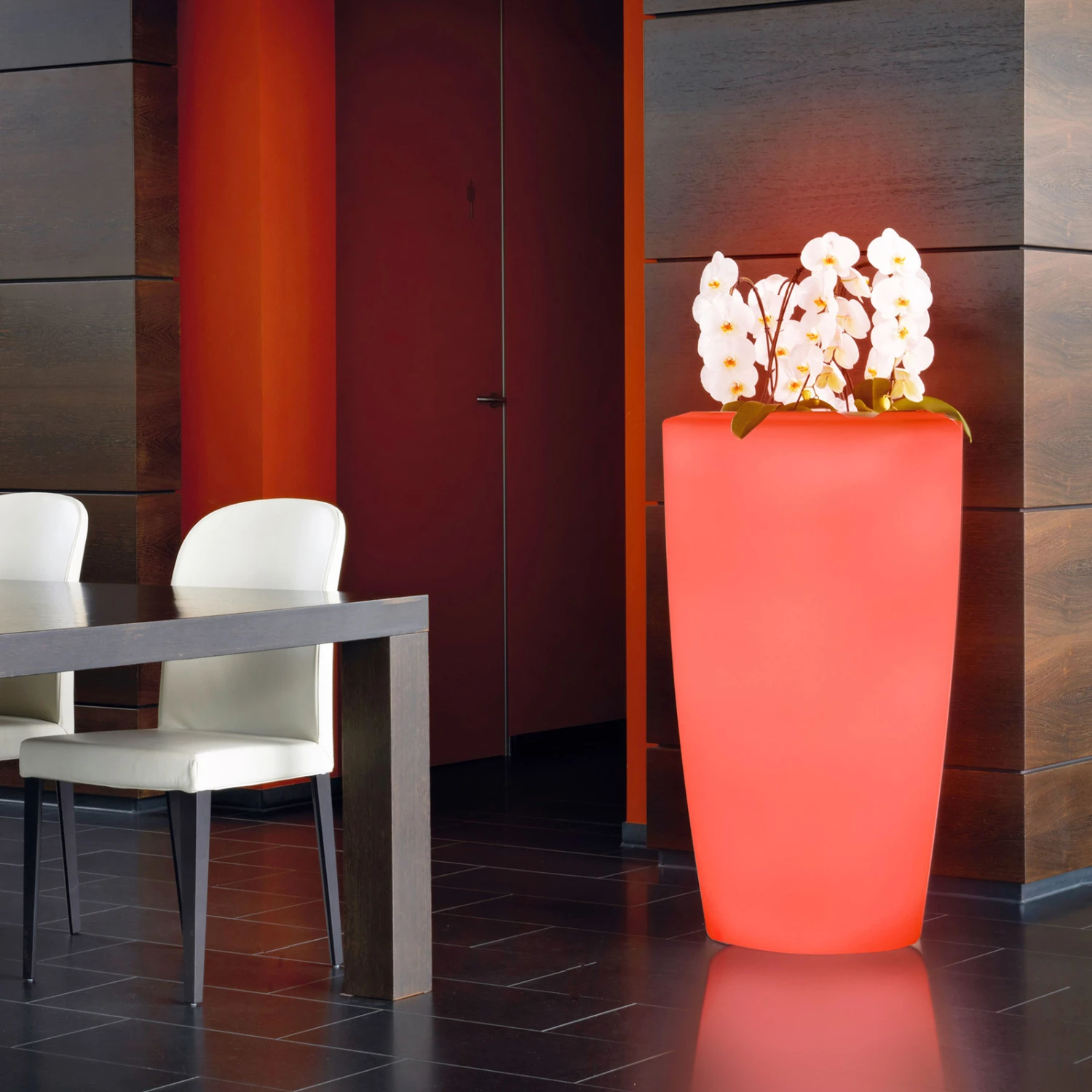 Rovio IV besticht mit einer runden Silhouette und wirkt unbeleuchtet schon sehr dekorativ, zumal, wenn sie mit schönen Pflanzen bestückt wurde. Wenn dann die Beleuchtung eingeschaltet wird, hat man die Qual der Wahl, was die Lichtfarbe angeht. Rovio IV ist mit zwei RGB- und CCT-Leuchtmitteln ausgestattet, die vom Anwender ausgetauscht werden können. Die Einstellungen können stufenlos mit der im Lieferumfang enthaltenen Fernsteuerung vorgenommen werden. Auch die Lichtintensität kann stufenlos gedimmt werden.