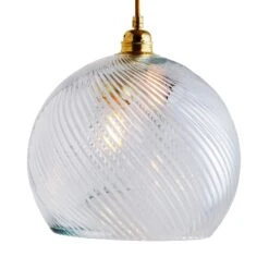 Ein Schmuck für jeden Raum stellt die Hängeleuchte Rowan bereits in unbeleuchtetem Zustand dar. Ihr Schirm besteht aus mundgeblasenem Glas, in das ein dekoratives Wirbelmuster eingebracht wurde, das der Lichtabstrahlung ein besonderes Flair verleiht. Durch die in einem warmen Goldton gestaltete Fassung und Abhängung aus Metall und das ebenfalls goldfarbene Textilkabel erhält die Pendelleuchte Rowan einen festlichen Touch und das abstrahlende Licht einen gemütlichen Schimmer. Diese dekorative Hängeleuchte kann ausgezeichnet als Lichtquelle über einem Tisch im Esszimmer eingesetzt werden oder als Grund- und Bereichsbeleuchtung für Wohn- oder Schlafzimmer.