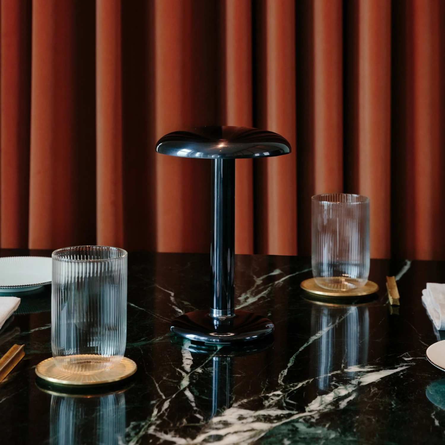 Dank der integrierten Akkus lässt sich Gustave kabellos nutzen, die kompakte Form erleichtert die Handhabung, den Transport und die flexible Platzierung. Geladen werden die Akkus per USB-C-Kabel (im Lieferumfang enthalten – ohne Netzadapter). Die gesamte Leuchte ist vor Spritzwasser geschützt, so dass sie auch im Außenbereich, beispielsweise auf der Terrasse oder im Garten, verwendet werden kann.