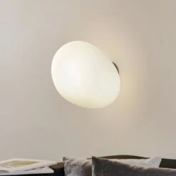 Gregg ist eine vielseitige und variantenreiche Leuchtenfamilie aus der Manufaktur des Herstellers Foscarini. Aufgrund des reduzierten Designs fügen sich die Leuchten problemlos in jede Umgebung ein. So auch die Wandleuchte, deren weißer Glasschirm das Licht in der gesamten Umgebung verteilt und für eine atmosphärische Beleuchtung sorgt. Der Schirm ist mundgeblasen und hat eine organische Form, die an einen Kieselstein erinnert und je nach Blickwinkel anders auf den Betrachter wirkt. Gregg kann als Wand- oder Deckenleuchte eingesetzt werden.