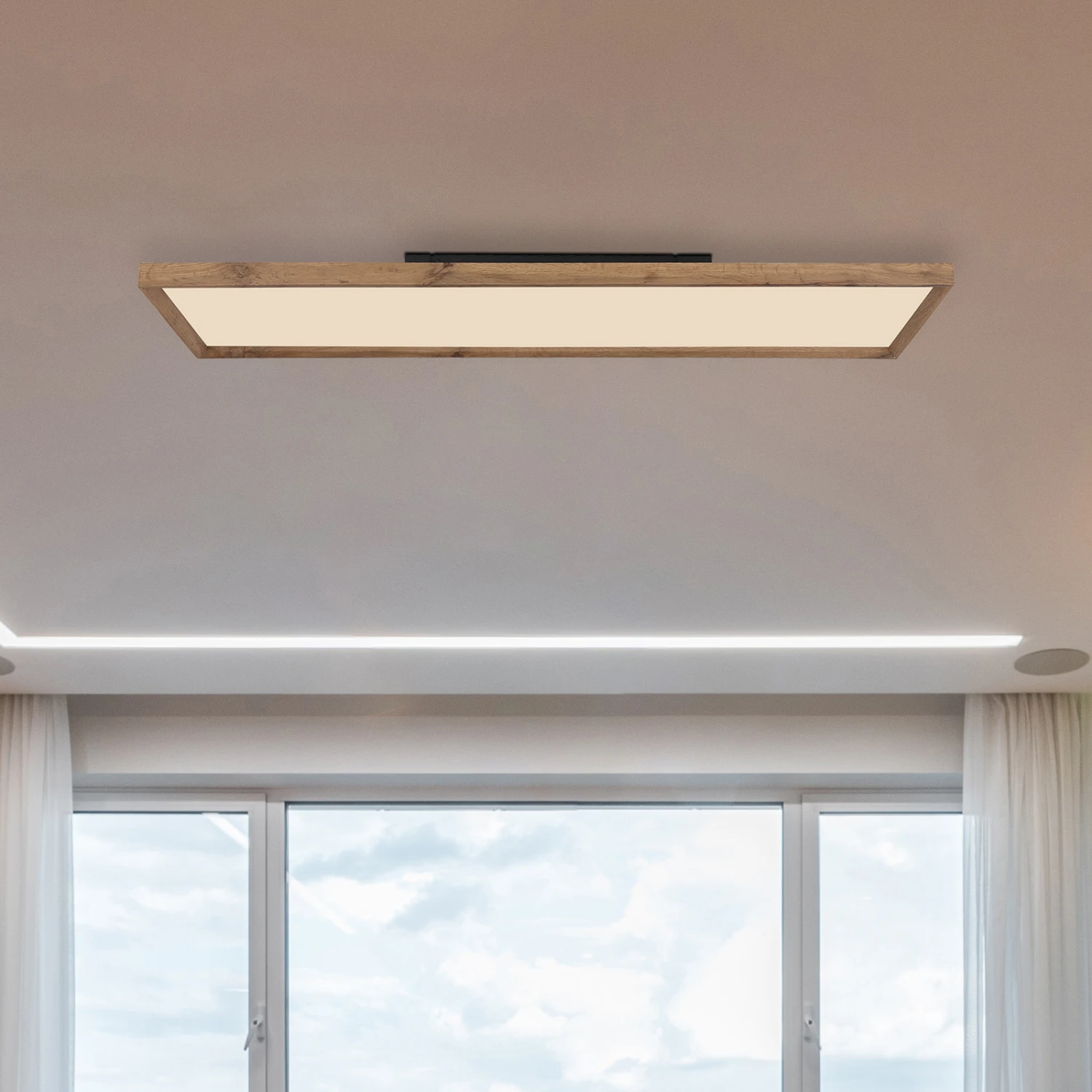 LED-Deckenleuchte Cinderella mit Holzrahmen und CCT-Schalter
