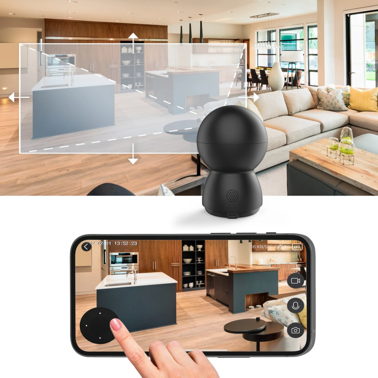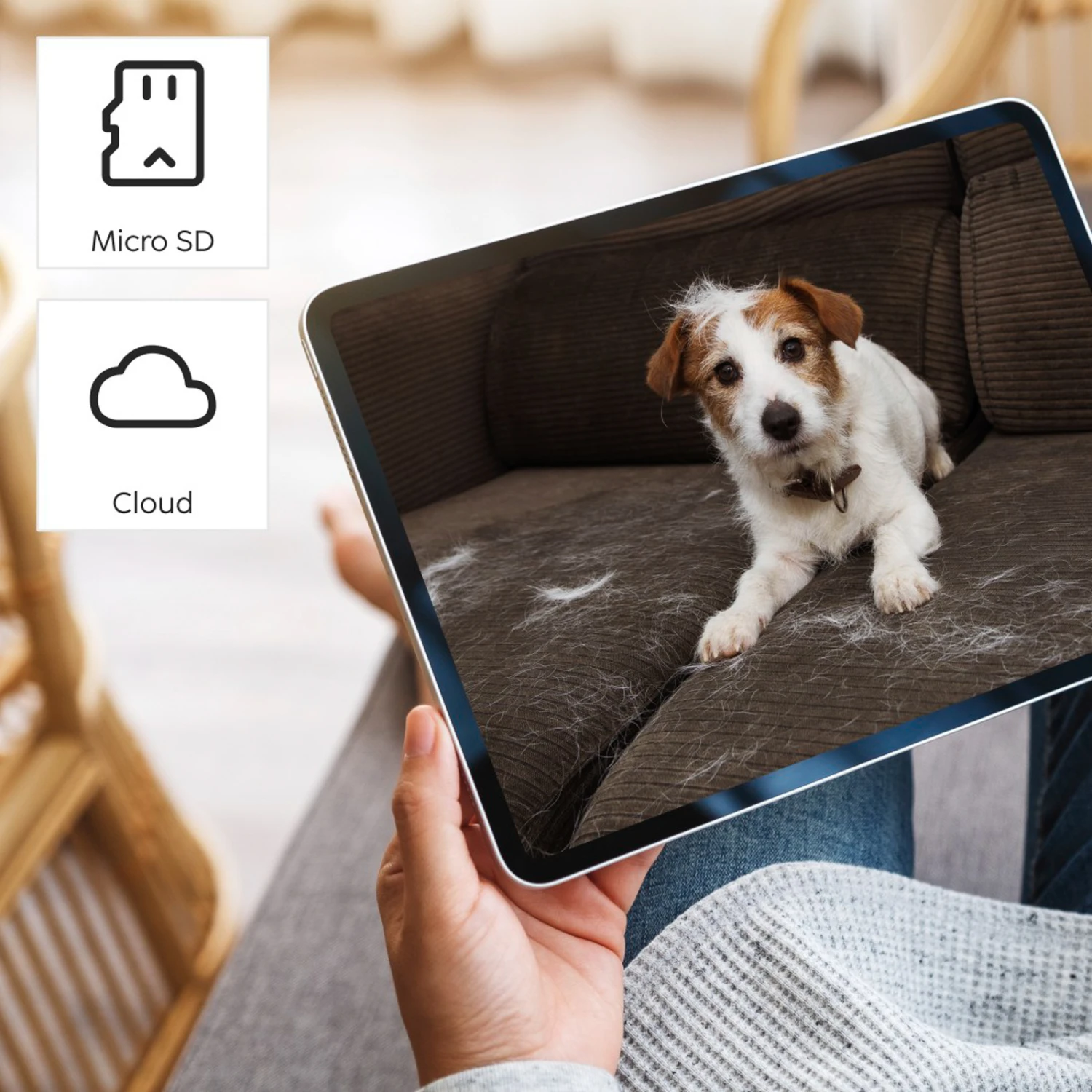 – Videoaufzeichnung via SD-Karte (max. 128 GB, nicht enthalten) oder Cloud (kostenpflichtig)