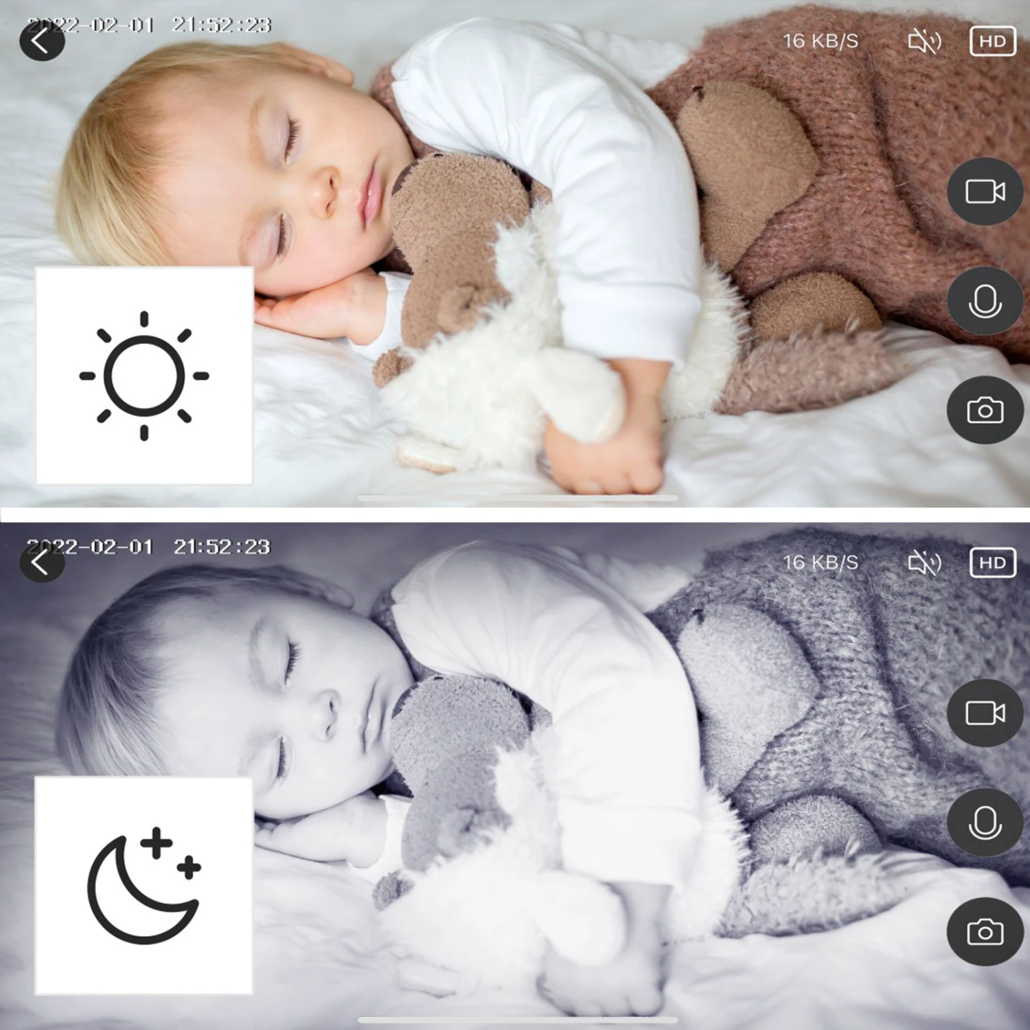– mit 2-Wege-Audio-System (als Babyphone nutzbar)