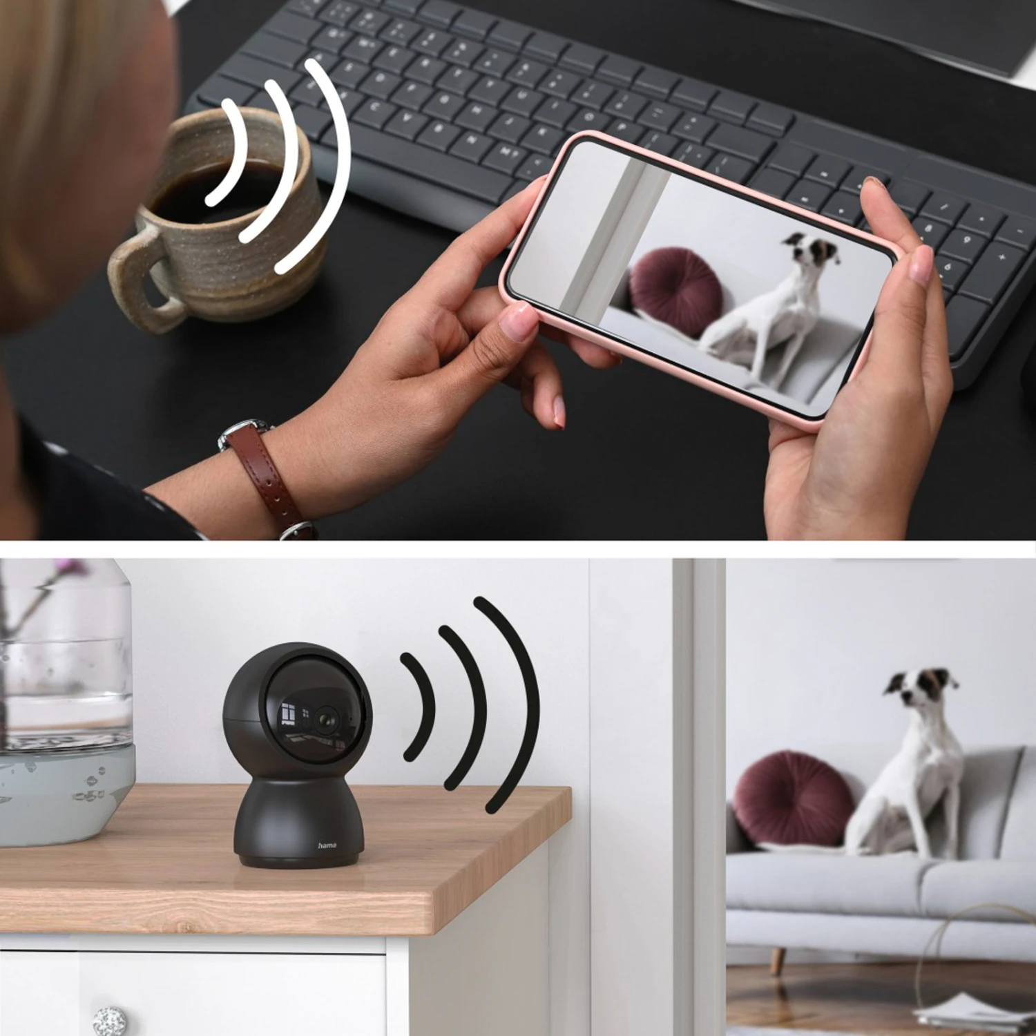 Ganz ohne Gateway per App steuerbar: Indoor-Kamera WLAN von Hama mit Bewegungssensor und 2-Wege-Audio-System, schwenk- und neigbar, Full-HD, SD-Slot