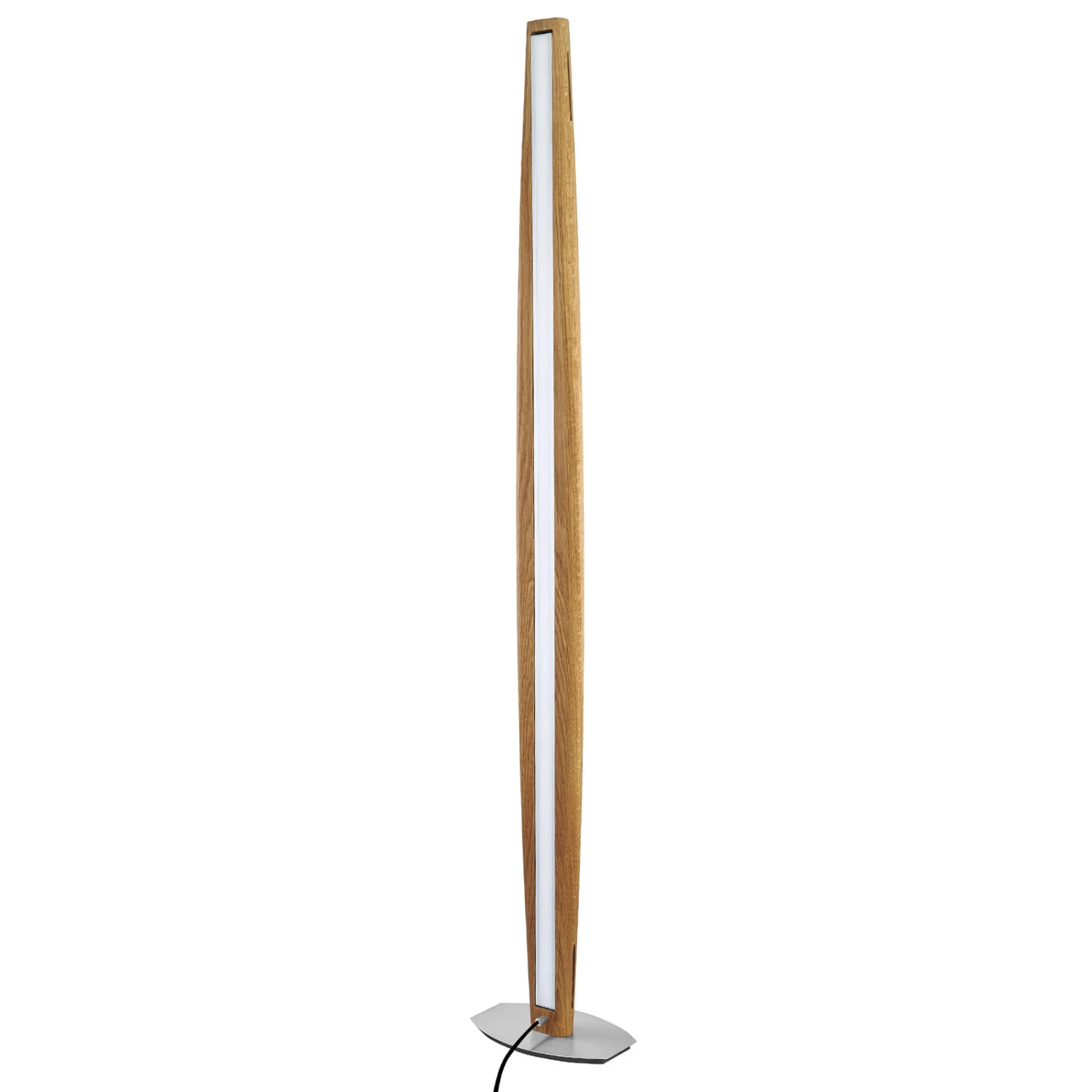 Arco ist eine LED-Stehleuchte der besonderen Art, denn mit ihrem hölzernen Leuchtenkörper aus geölter Asteiche und ihrem länglich eingelassenen LED-Streifen (dimmbar) sorgt sie für besondere Momente im Wohnraum. Das Licht wird durch die satinierte Abdeckung sanft entblendet und gleichmäßig ausgestrahlt, so dass ein tolles Raumgefühl und eine angenehme Lichtatmosphäre entsteht. Der hölzerne Leuchtenkörper in Kombination mit dem matt vernickelten Leuchtenfuß lässt ein besonders harmonisches Gesamtbild entstehen, das sich problemlos in jedes Raumkonzept integrieren lässt.
