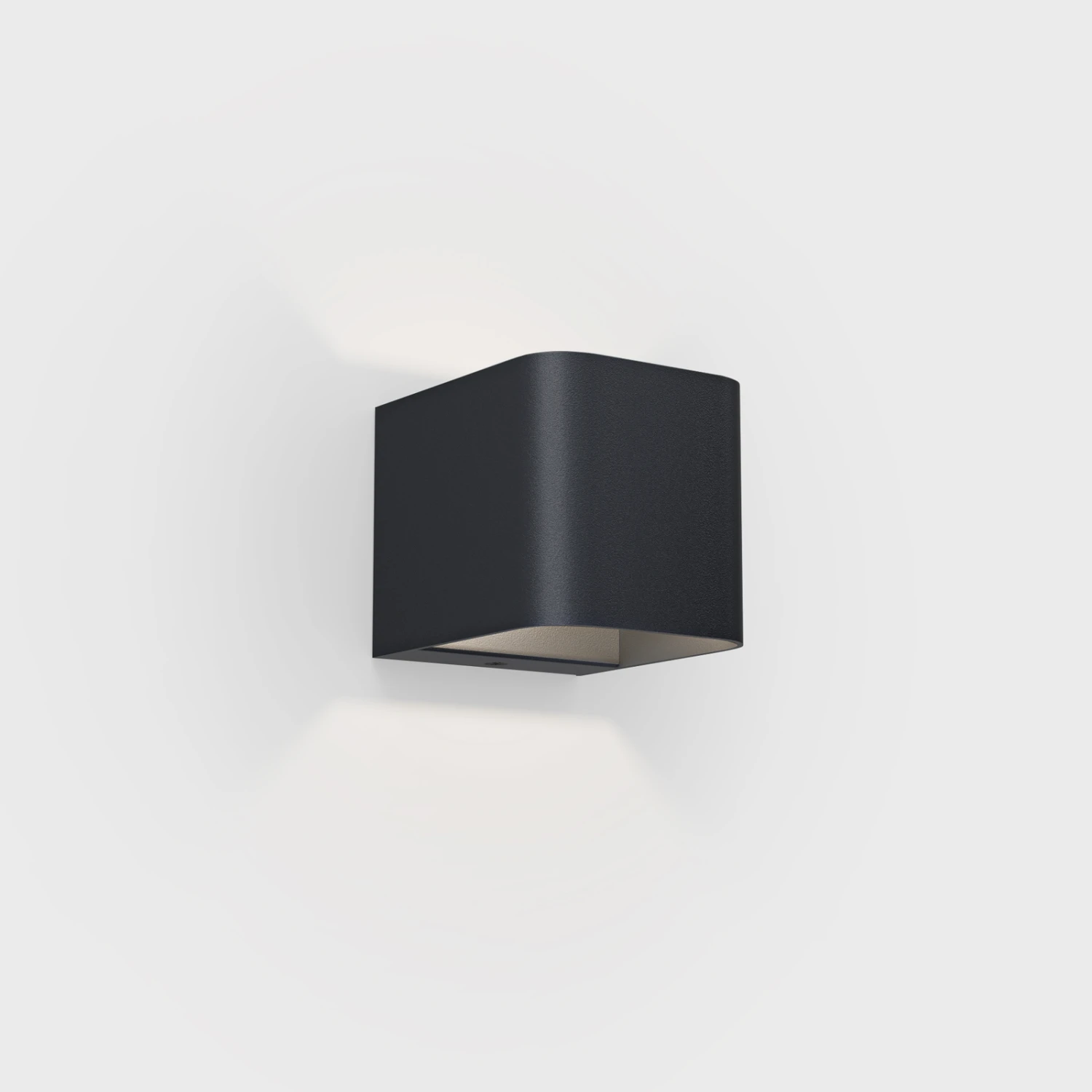 Die LED-Außenwandleuchte intro stellt einen kubisch geformten Körper dar, dessen Kanten abgerundet sind und so besonders sanft und elegant wirken. Der Aluminiumkorpus ist nach oben und unten geöffnet, wodurch die Lichtkegel der warmweißen LEDs an der Wand abgezeichnet werden. Das ansprechende Up- und Downlight sorgt für blendfreie Beleuchtung, die neben der Sicherheit eine hohe Ästhetik realisiert. Dank des satinierten Borosilikatglases ist die Lichtquelle auf elegante Weise geschützt und erzeugt ein homogenes Licht. Die hochwertige Verarbeitung zusammen mit der hohen Schutzart machen intro zur idealen Beleuchtung für die Außenanlage, die Langlebigkeit verspricht und dank des zeitgemäßen Designs nicht an Modernität verliert.