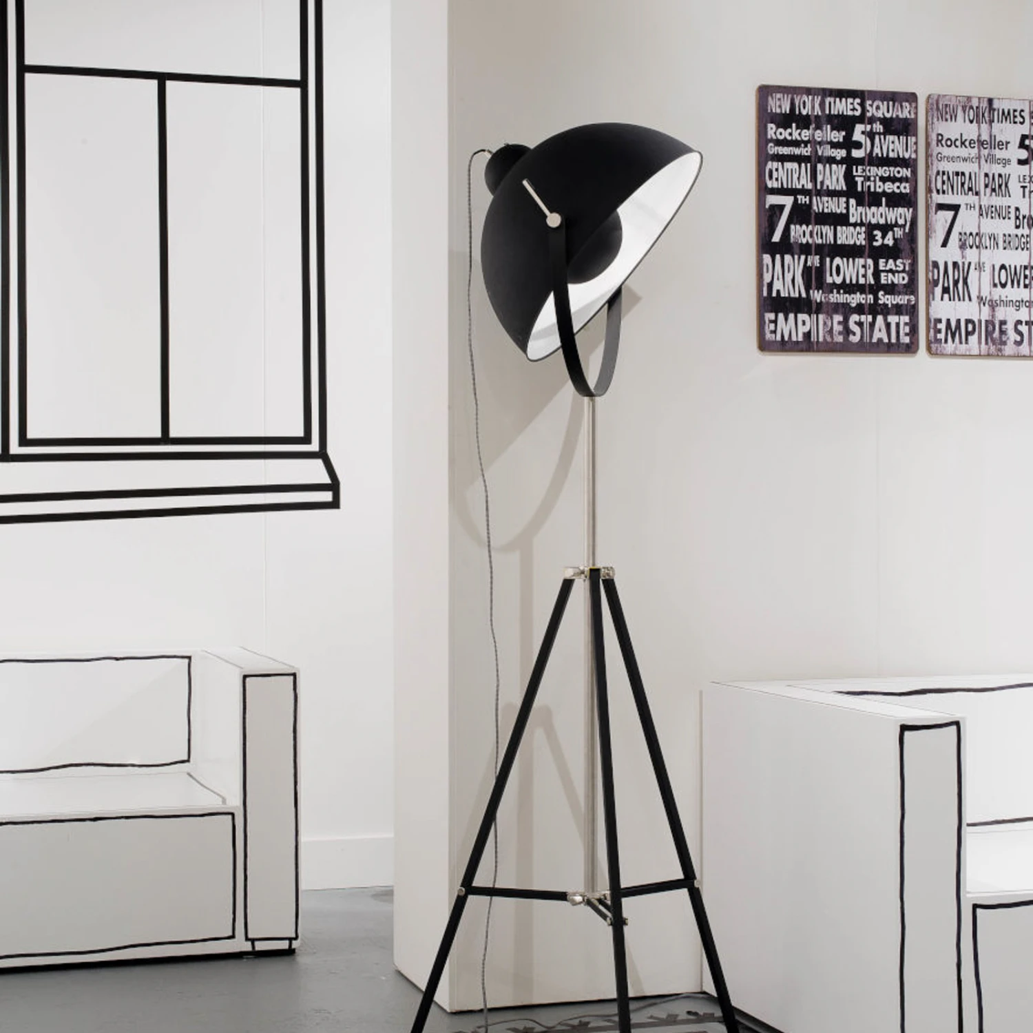 Flexible Dreibein-Stehleuchte Hollywood in Schwarz
