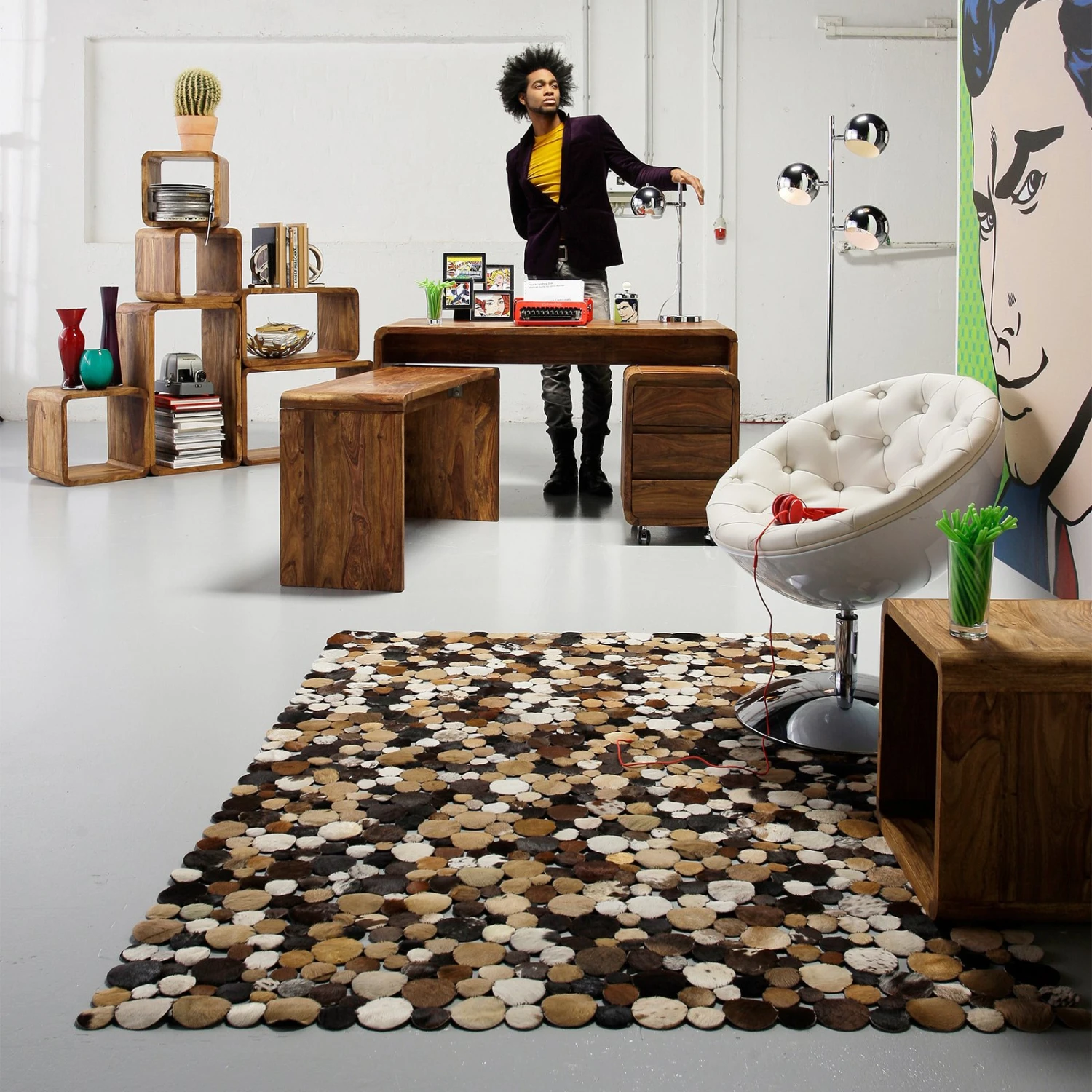 CALOTTA besitzt eine ganz eigene Ausstrahlung und dies wird nicht zuletzt durch die Kombination von modernen Zügen mit im Retrostil gehaltenen Komponenten hervorgerufen. Gerade und runde Elemente ergänzen sich perfekt und die Kugelschirme lassen sich beliebig drehen, je nachdem, wie es die Situation erfordert. Sowohl im Wohnzimmer als auch im modernen Home-Office findet CALOTTA jederzeit einen guten Platz.