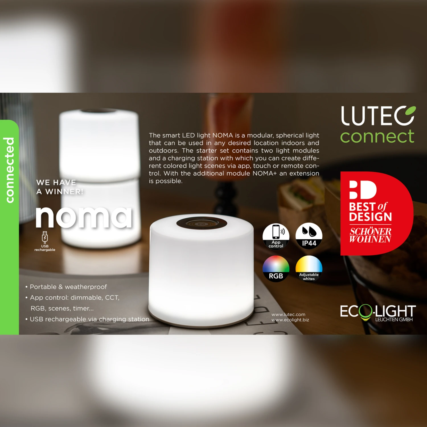 Das Noma Starter-Set kann ganz einfach durch das Zusatzmodul erweitert werden. Dieses bietet ein weiteres Lichtmodul, welches zur Beleuchtung im Außenbereich beiträgt. Das Zusatzmodul verfügt über festverbaute LEDs, die in seinem weißen Kunststoff Körper sitzen und eine flexible Beleuchtung garantierten. Sie sind nämlich dimmbar, können in unterschiedlichen Lichtfarben von warmweiß bis tageslicht oder in bunten Farben leuchten. Das Zusatzmodul ist nur nutzbar mit einem vorhandenen Starter-Set der Noma LED-Tischleuchte (siehe Zubehör)
