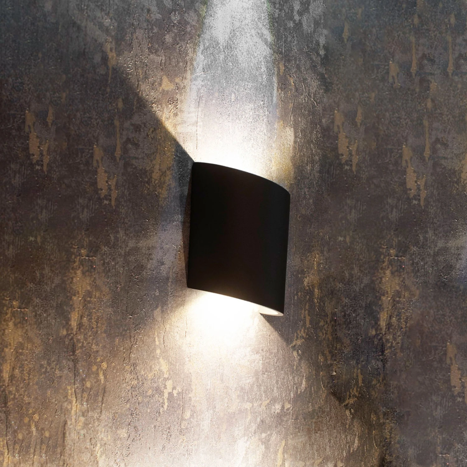 Eckig, halbrund und schräg wurde die LED-Außenwandleuchte Sochi aus dunkelgrau lackiertem Aluminium gefertigt. Das warmweiße Licht der LEDs strahlt sowohl nach oben als auch nach unten aus und bewirkt damit einen interessanten Lichteffekt an der Fassade. Die Leuchte kann in zwei Richtungen montiert werden, so dass es auch möglich ist, zwei Leuchten spiegelverkehrt anzubringen, zum Beispiel rechts und links neben der Haustür.