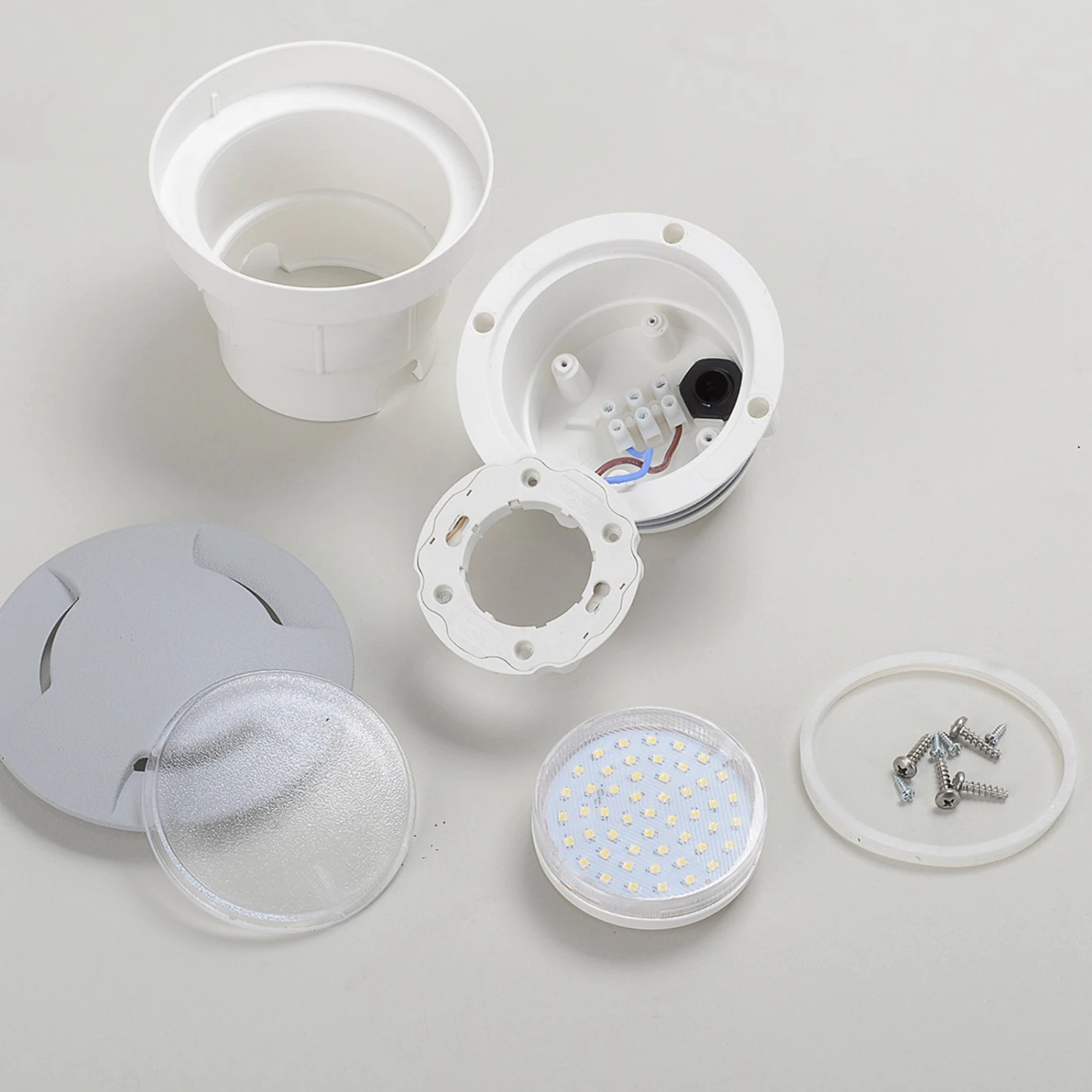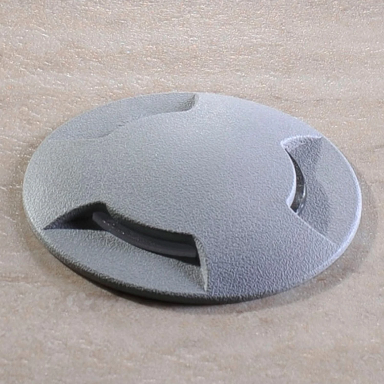 Besonderheit dieser LED-Bodeneinbauleuchte Ceci ist das im Lieferumfang enthaltene Leuchtmittel, welches eine Einstellung der Lichtfarbe ermöglicht. Es ist mit einem kleinen Schalter ausgestattet, über den sich die Lichtfarbe einstellen lässt, und zwar entweder Warmweiß (3.000 K), Universalweiß (4.000 K) oder Tageslicht (6.500 K). Die Bodeneinbauleuchte in Grau strahlt durch die drei Lichtaustritte, sodass ein interessanter Lichteffekt entsteht. Sie hält großen mechanischen Belastungen stand und ist UV- und korrosionsbeständig.