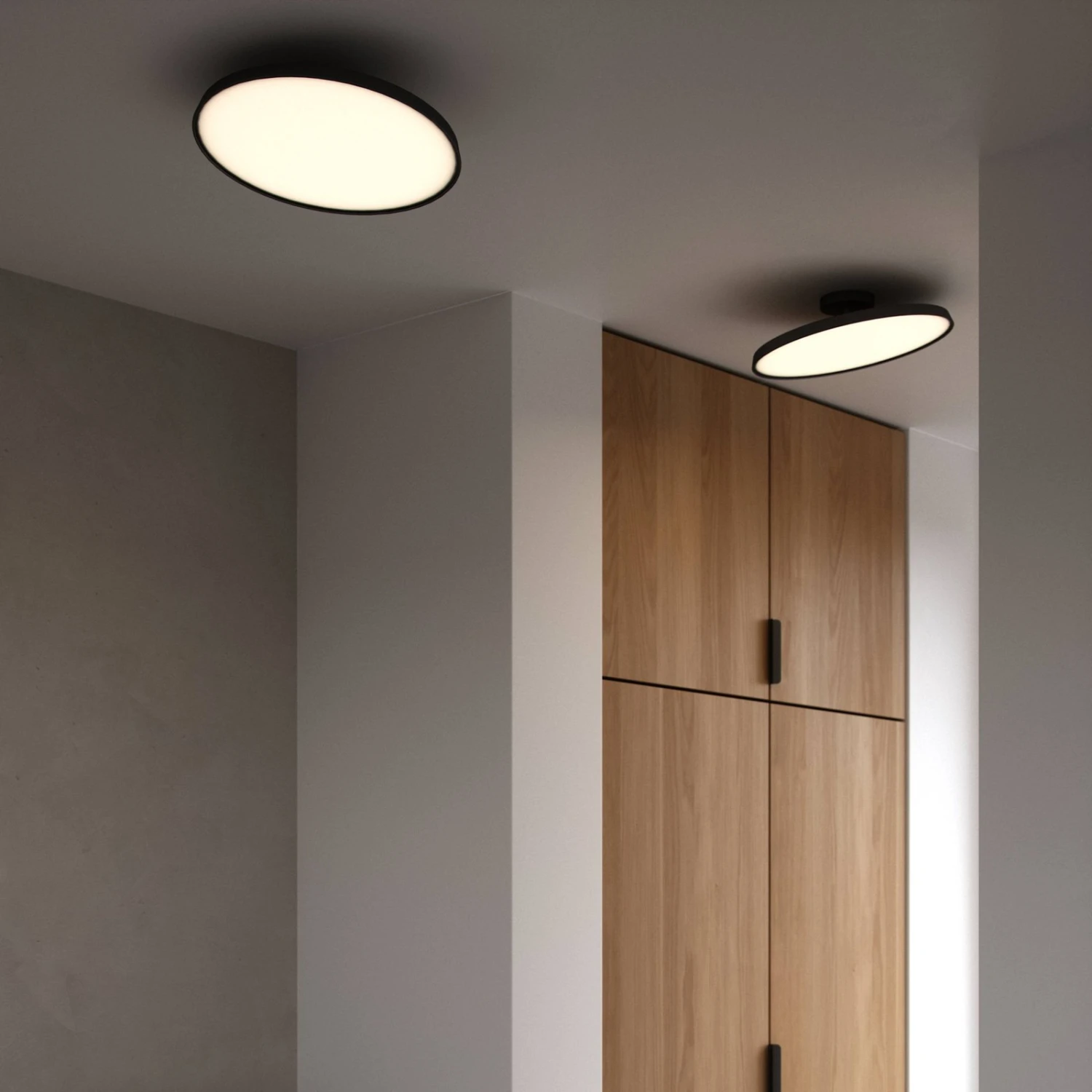 Die moderne Gestaltung sowie der neigbare, flach gehaltene Leuchtenschirm zeichnen die LED-Deckenleuchte Kaito Pro aus. Der Schirm ist mit kleinem Abstand mittels kontrastfarbig gestaltetem Metallstab am runden Baldachin befestigt. Die LED-Deckenleuchte Kaito Pro kann flexibel im Wohnbereich, beispielsweise im Wohnzimmer, im Flur oder im Schlafzimmer montiert werden. Das warme Licht wird durch den weißen Diffusor, der den schirm nach unten verschließt, blendfrei an die Umgebung abgestrahlt und sorgt für eine angenehme Atmosphäre im Wohnraum. Mit einem externen Phasendimmer lässt sich die Helligkeit der Deckenlampe regulieren, sodass jederzeit die optimalen Lichtverhältnisse eingestellt werden können. Außerdem ist es möglich, den Schirm zu neigen, um das Licht in die gewünschte Richtung zu lenken.
