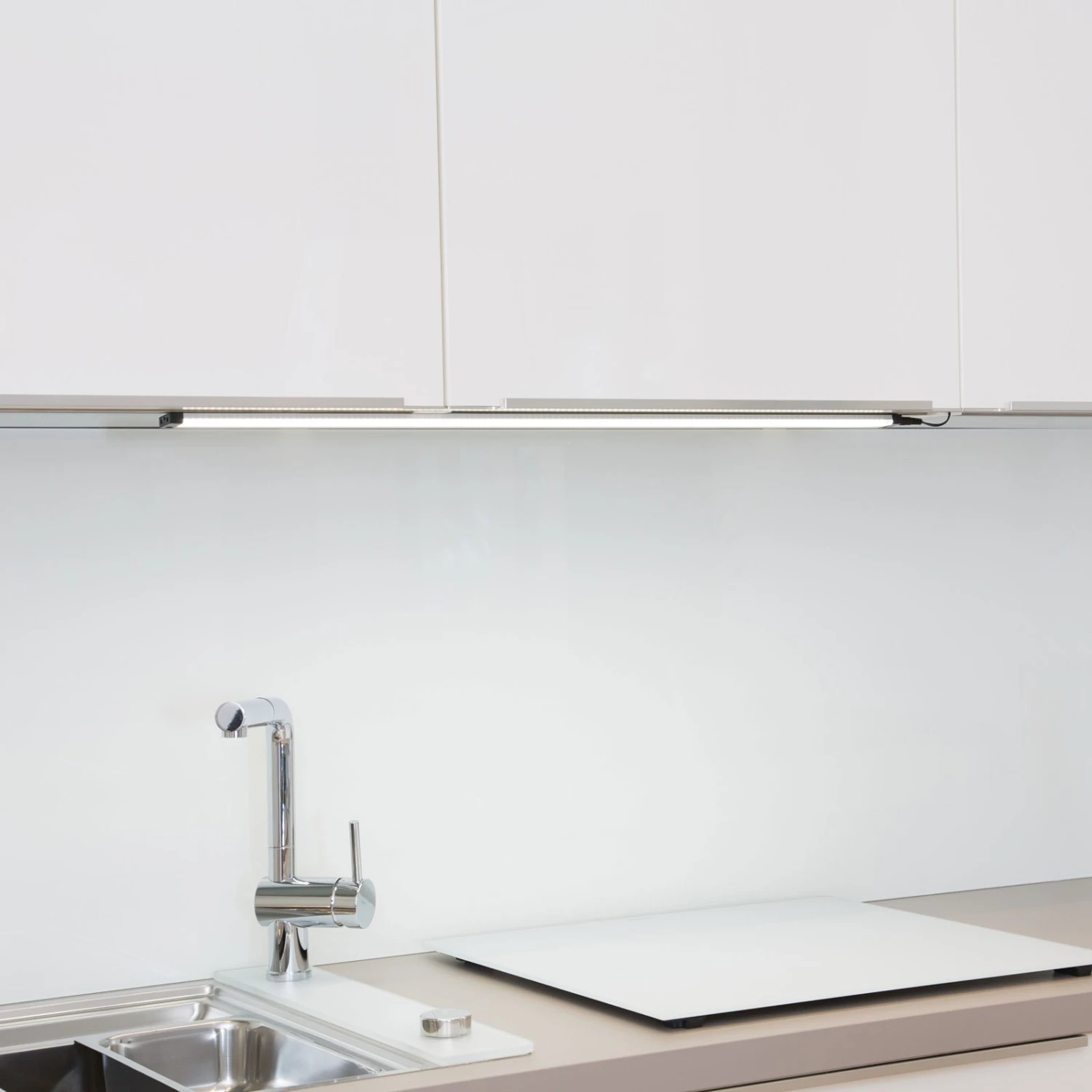 Die moderne und formschöne LED-Unterbauleuchte Balic Sensor eignet sich für den Einsatz unter Küchenschränken oder auch in Schubladen oder Schränken. Dank des eingebauten Bewegungssensors reicht eine Handbewegung, um das Licht einzuschalten. Durch das Halten der Hand unter der Leuchte dimmt das Licht bis zur gewünschten Helligkeit. Durch einen Schalter an der Leuchte kann entweder der Bewegungssensor oder ein Entfernungssensor aktiviert werden. Der Entfernungssensor eignet sich zum Beispiel perfekt, um das Licht beim Aufziehen der Schublade oder dem Öffnen der Schranktür auszulösen.