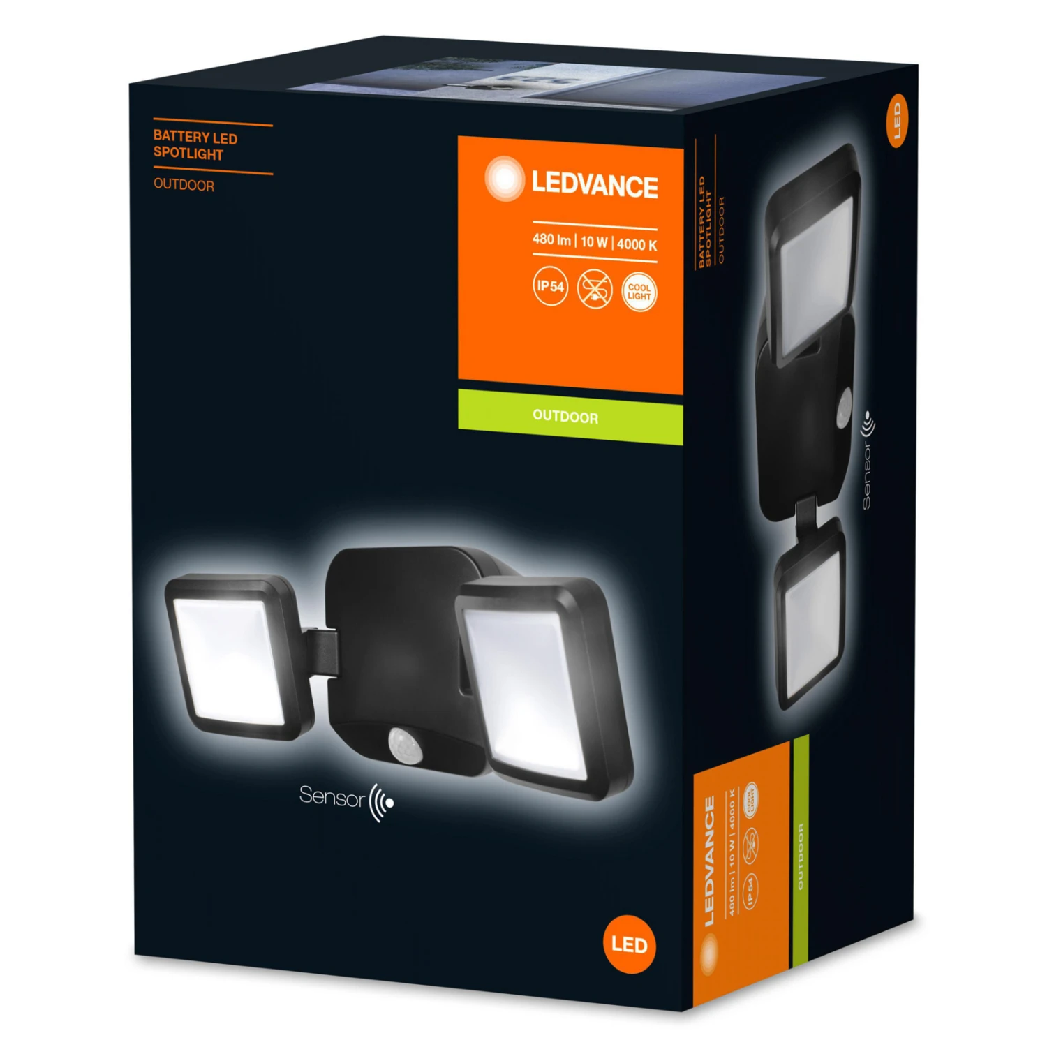 Die LED-Außenwandleuchte Battery LED Spotlight Double ist mit zwei seitlich am Korpus ansetzenden Strahlerköpfen bestückt, welche zur Beleuchtung des gewünschten Bereichs um 180° gedreht und um 280° geschwenkt werden können. Die witterungsbeständige Leuchte ist aus schwarzem ABS-Kunststoff gefertigt. Auch an Orten ohne Stromversorgung kann Battery LED Spotlight verwendet werden, da die Außenwandleuchte von vier D-Batterien gespeist wird, welche bis zu 5 Stunden für Energie sorgen. Um die Betriebsdauer zu verlängern und nur dann für Licht zu sorgen, wenn es benötigt wird, ist die Leuchte mit einem Bewegungssensor und einem Tageslichtsensor ausgestattet.