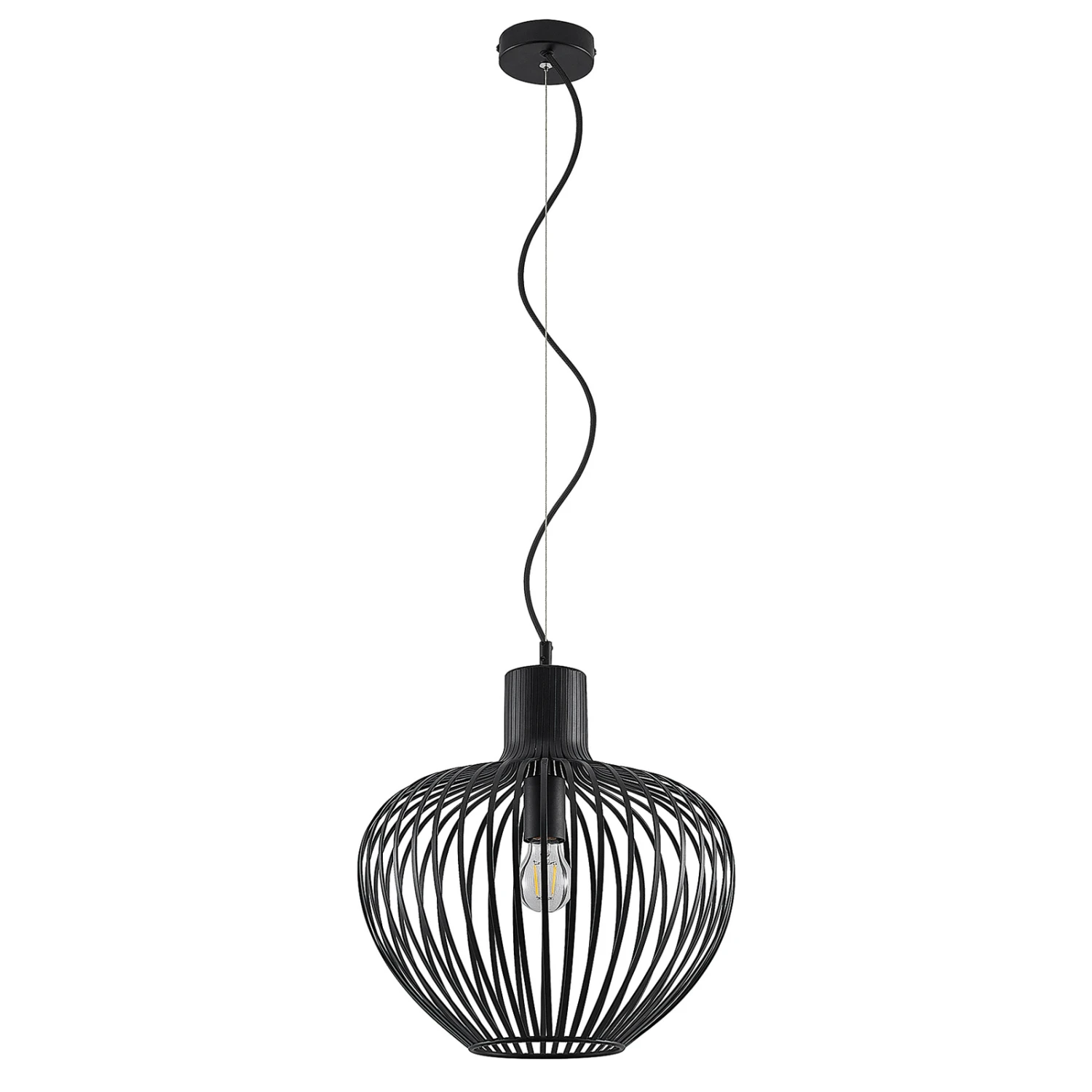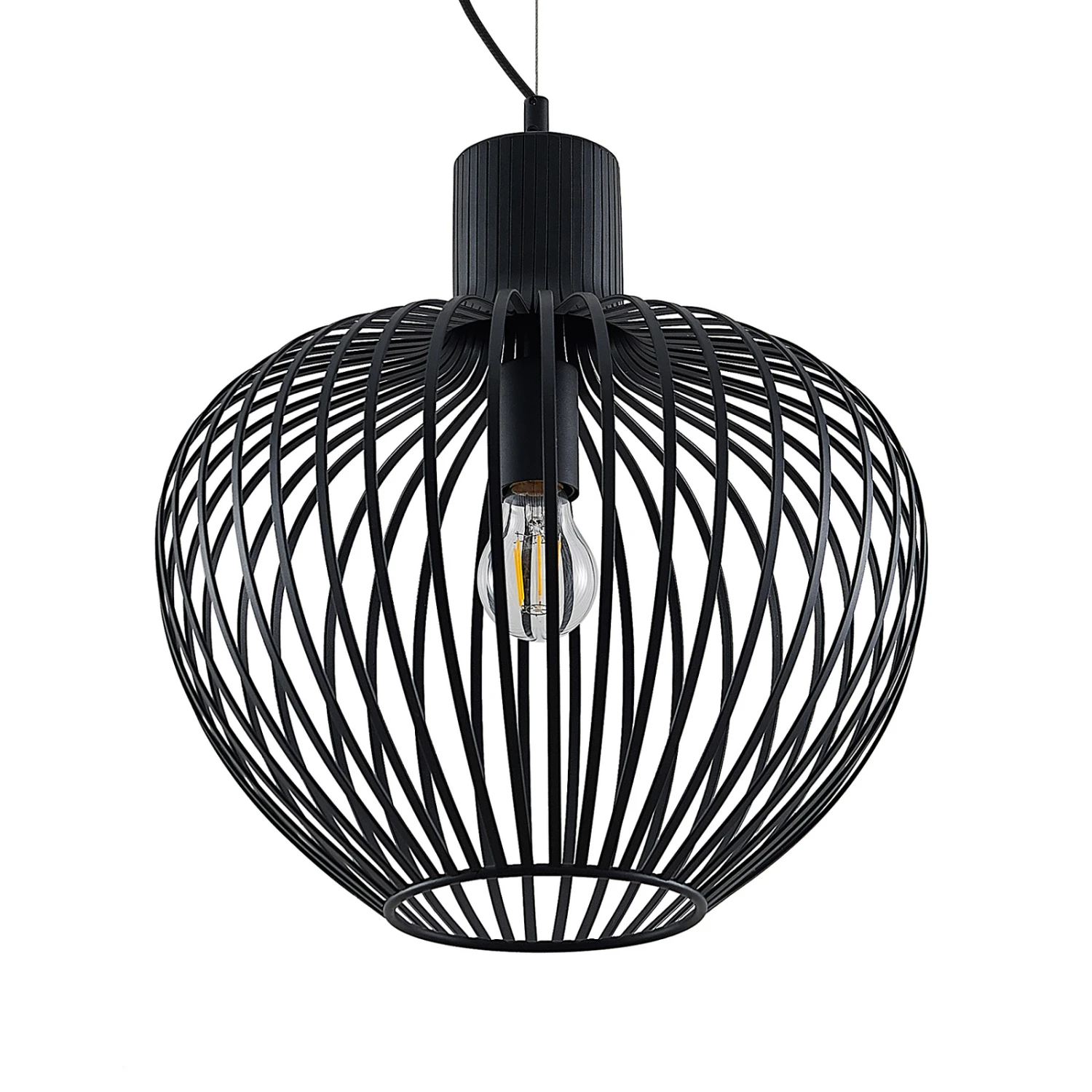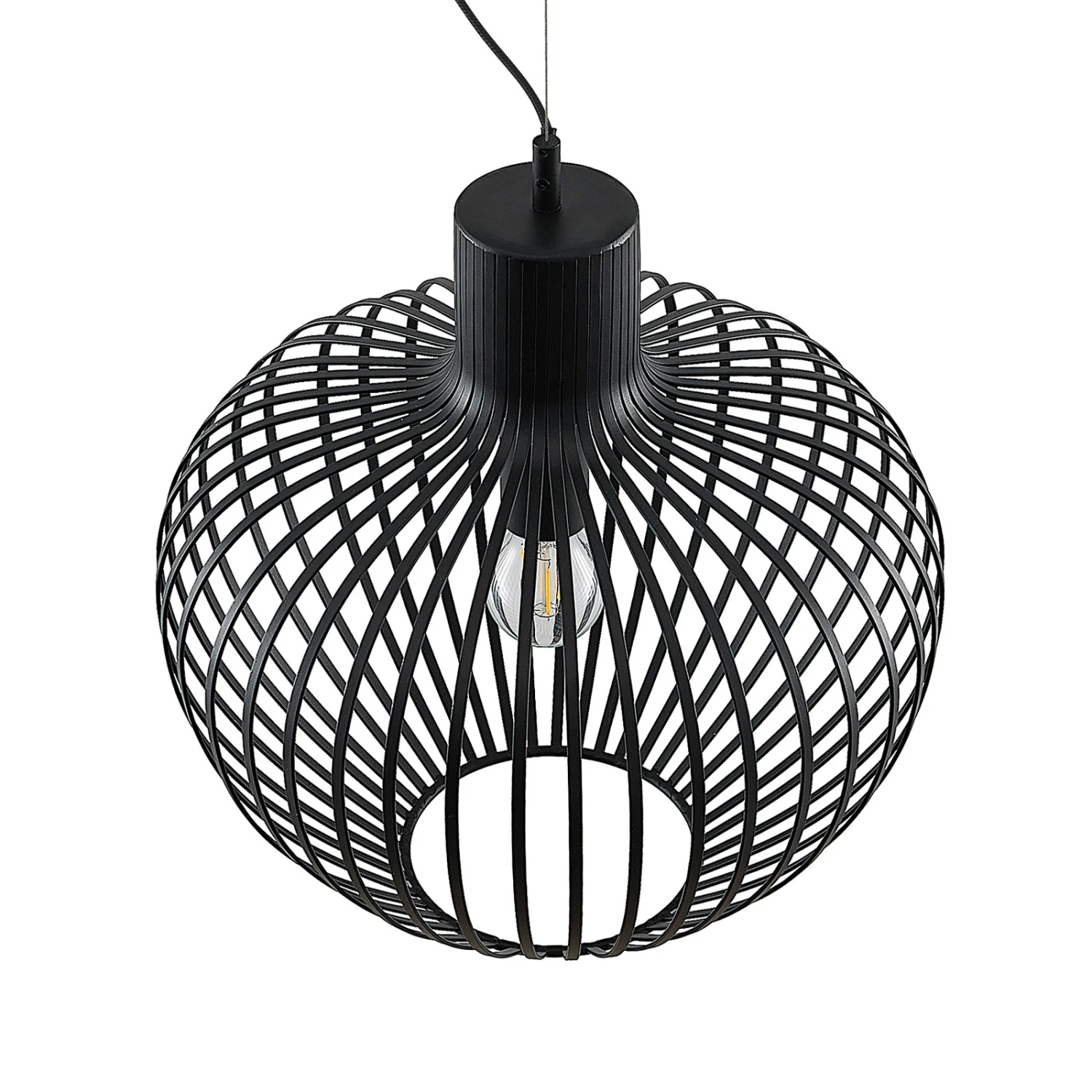 Die Hängelampe Deandre besitzt einen markanten Leuchtenschirm in Käfig-Optik und generiert eine ganz besondere Beleuchtung. Sie ist aus Stahl hergestellt und präsentiert sich in einer schlichten sandschwarzen Farbgebung, die das Design der Leuchte abrundet. Ihr Schirm wird mit entsprechenden Leuchtmitteln bestückt und bietet somit die Möglichkeit die Lichtintensität und Lichtfarbe an die persönlichen Bedürfnisse anzupassen. Die Hängeleuchte Deandre findet ihren perfekten Platz in einem Wohnzimmer oder Esszimmer und verbreitet hier ein spannendes Lichtspiel, da die schlanken Streben des Schirmes das Licht brechen.