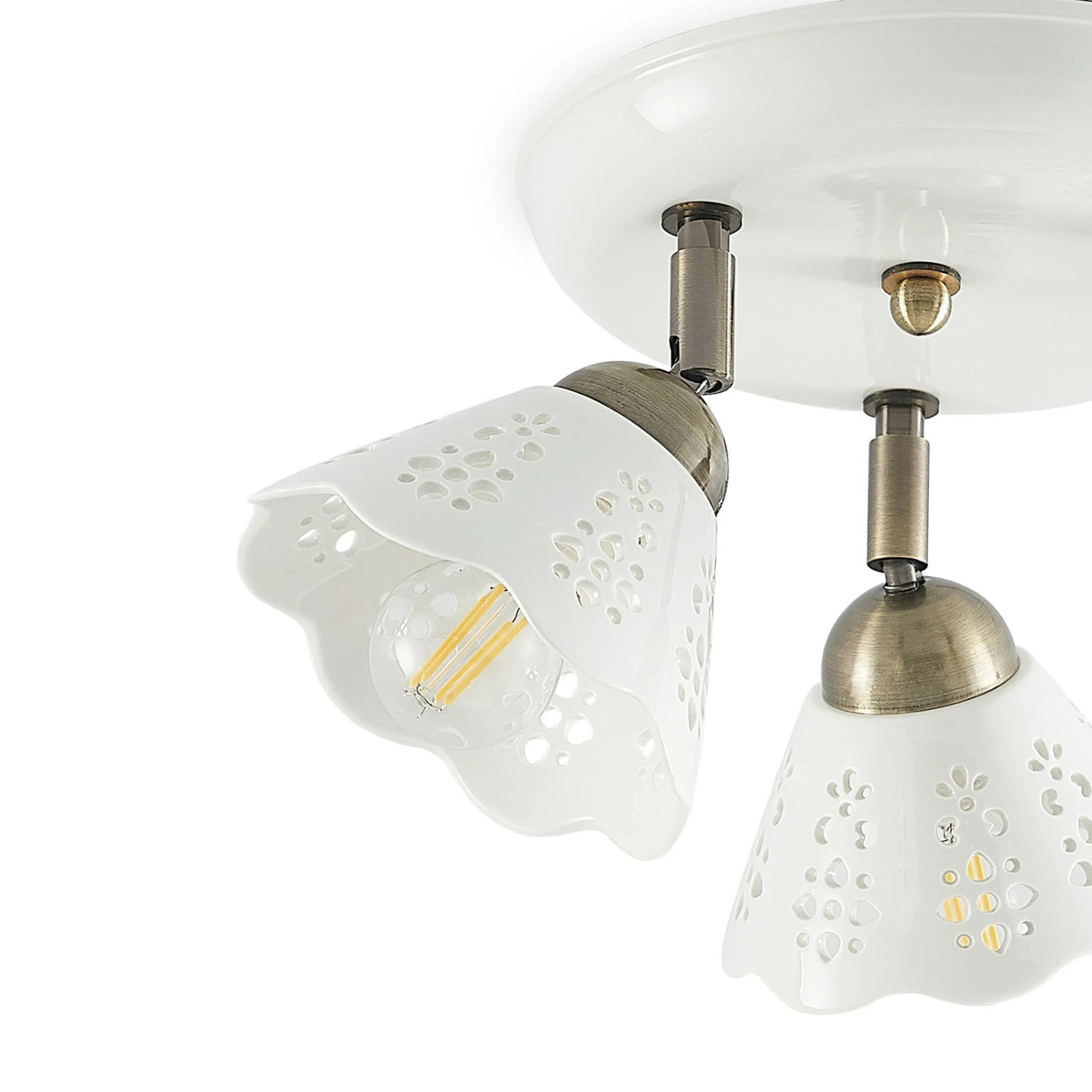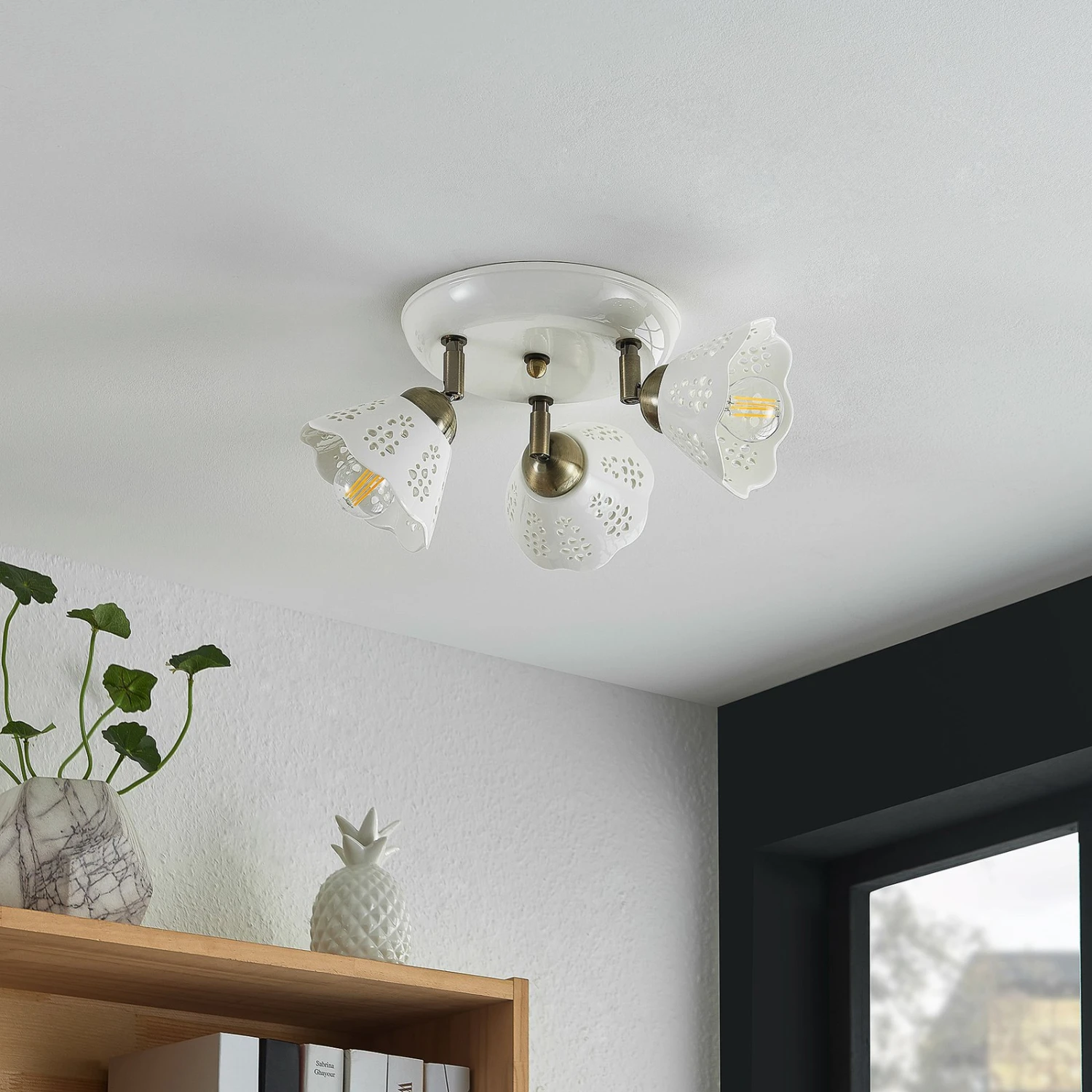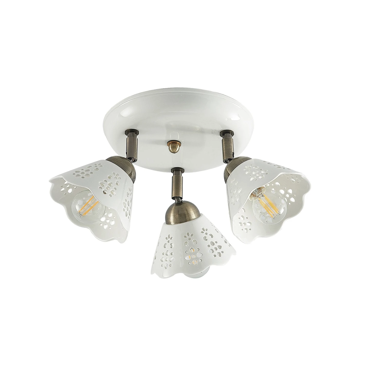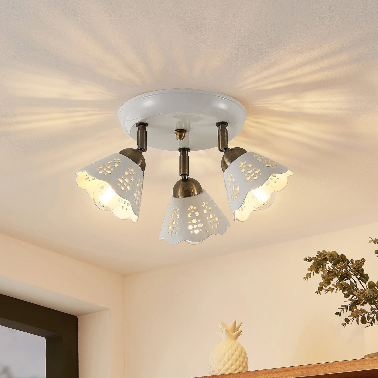 Dreiflammiger Deckenstrahler Efgenia aus Keramik und Eisen in verspieltem Design