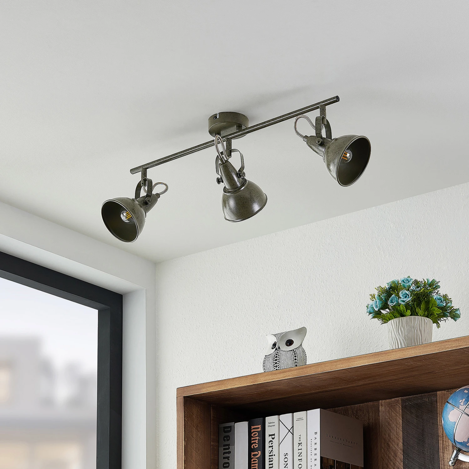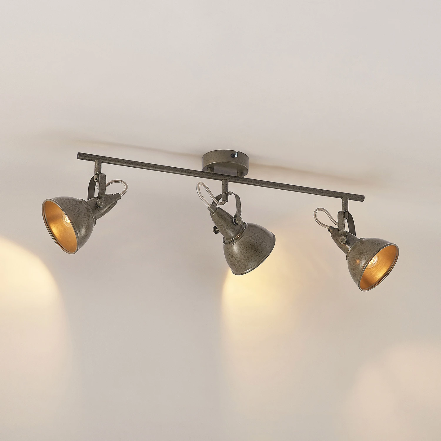 Julin punktet mit einem Aussehen, das Vintagestile gut ergänzt oder auch zu industriellen Einrichtungen passt. Der dreiflammige Strahler hat drei Stahlschirme, die alle flexibel bewegt werden können, um den Lichtschein im Raum optimal ausrichten zu können. Die Leuchte kann nicht nur an der Decke, sondern bei Bedarf auch an der Wand montiert werden und lässt sich am besten mit LED-Filamentlampen bestücken, die dekorativ aussehen und sparsam im Verbrauch sind. In der dreiflammigen Ausführung kann Julin gut für die Grundbeleuchtung im Raum vorgesehen werden.