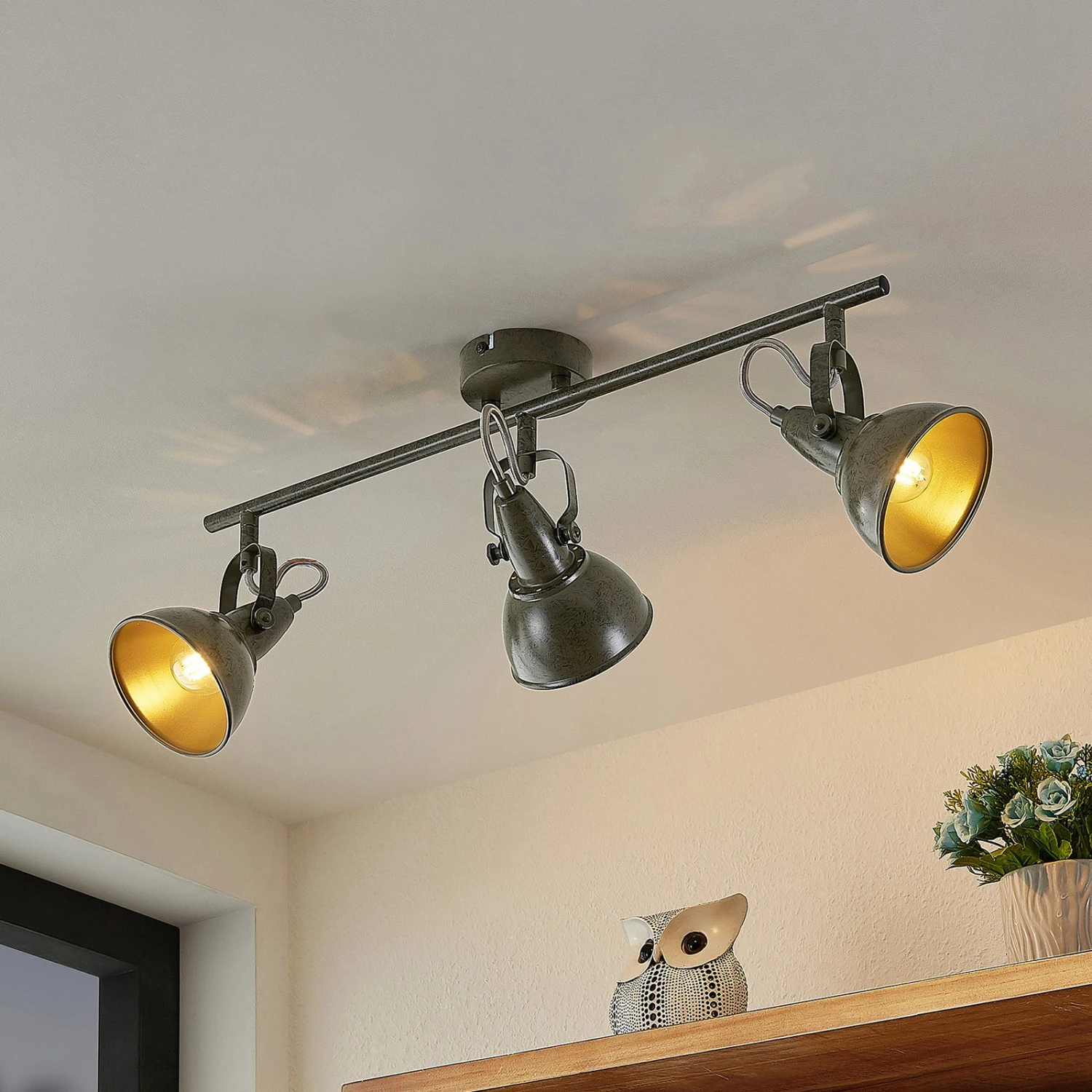 Dreiflammiger Deckenstrahler Julin mit dunkelgrauer Oberfläche