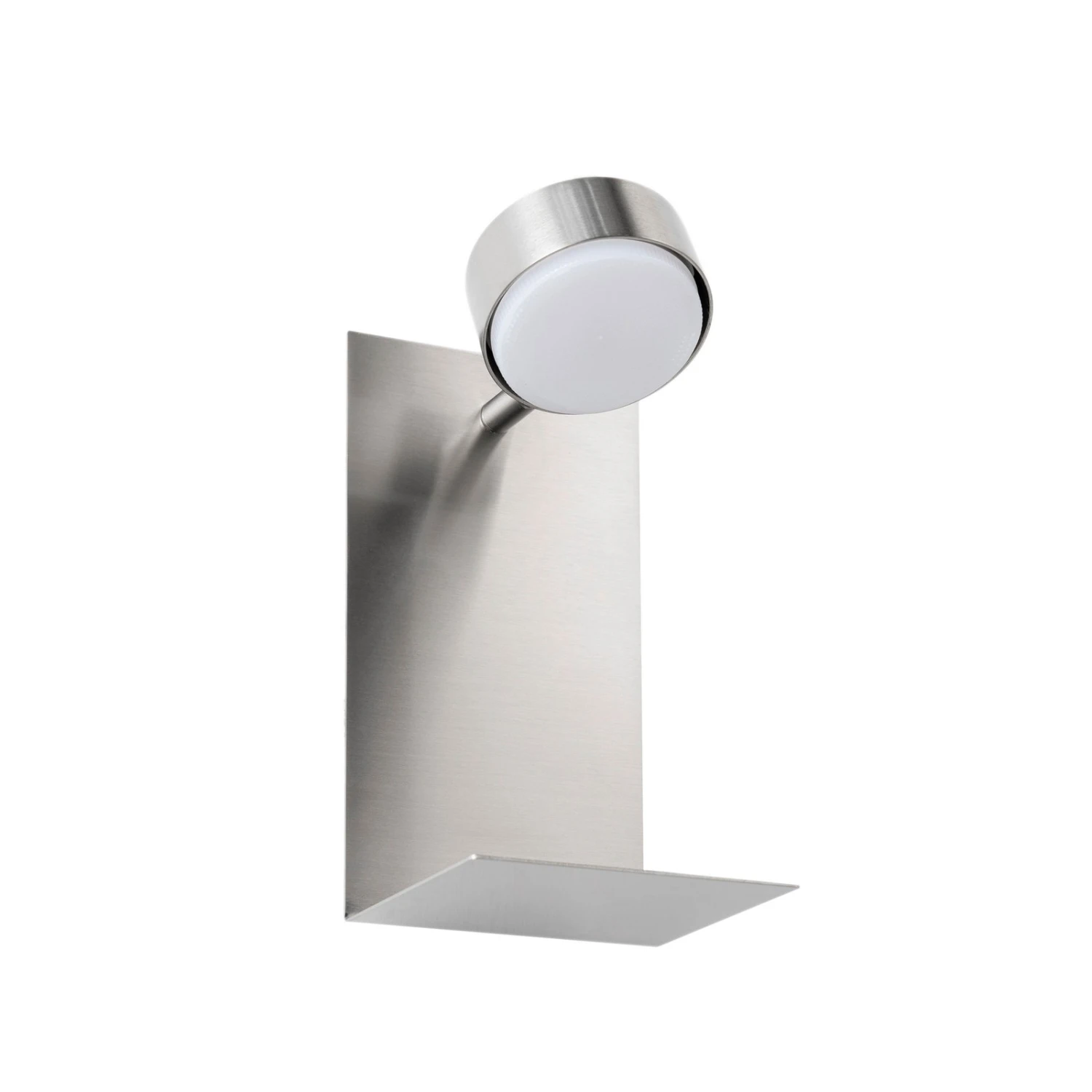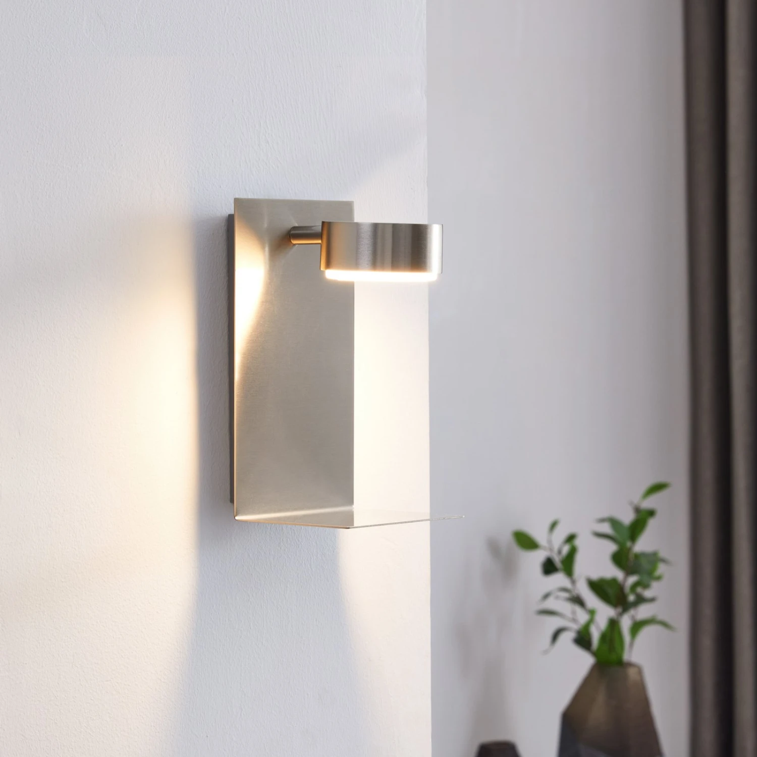 Wandleuchte Kaylou in Nickelfarben mit USB-Anschluss und Ablage
