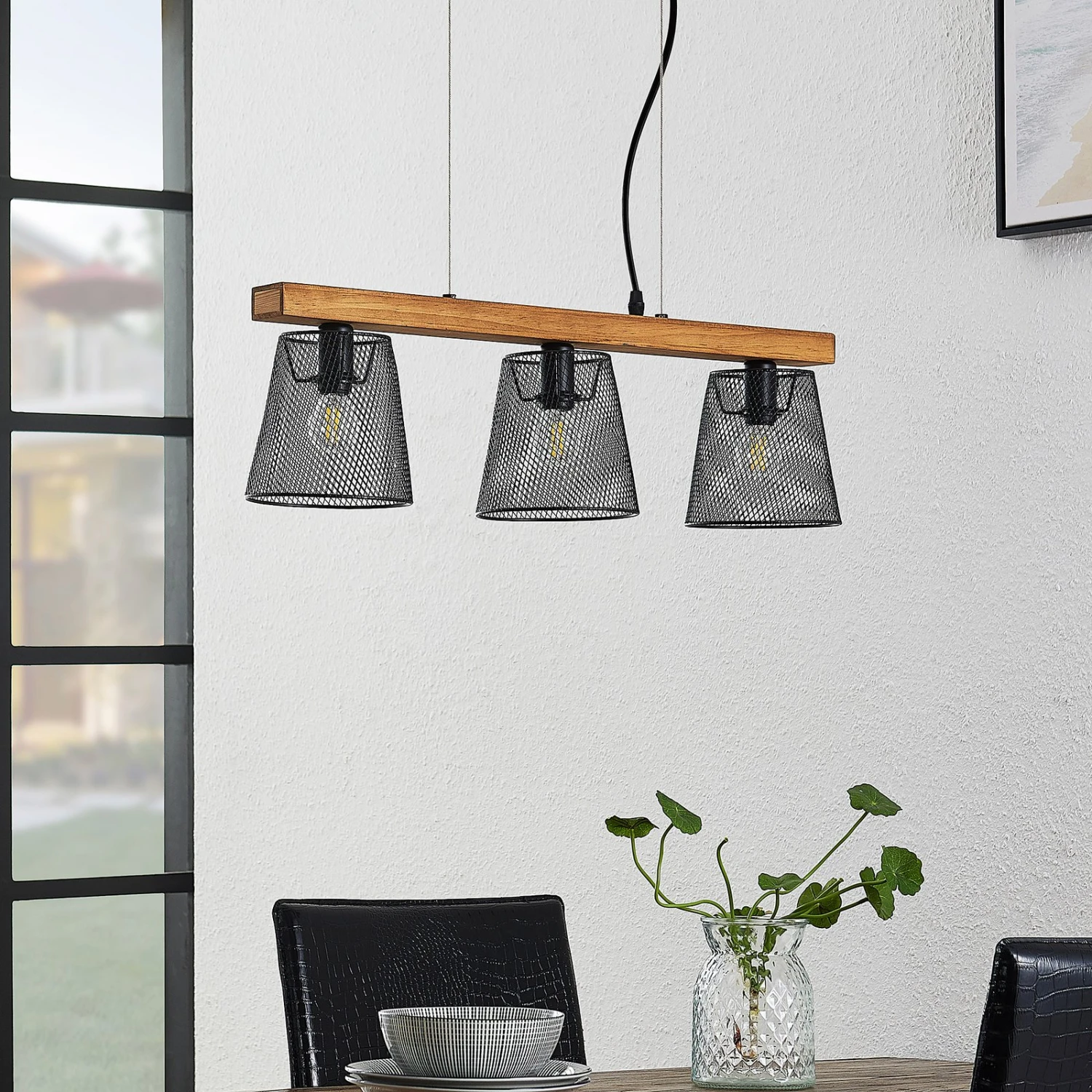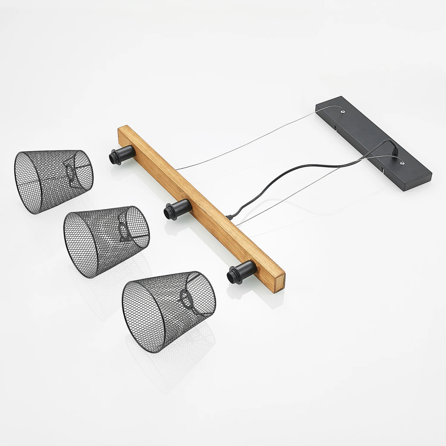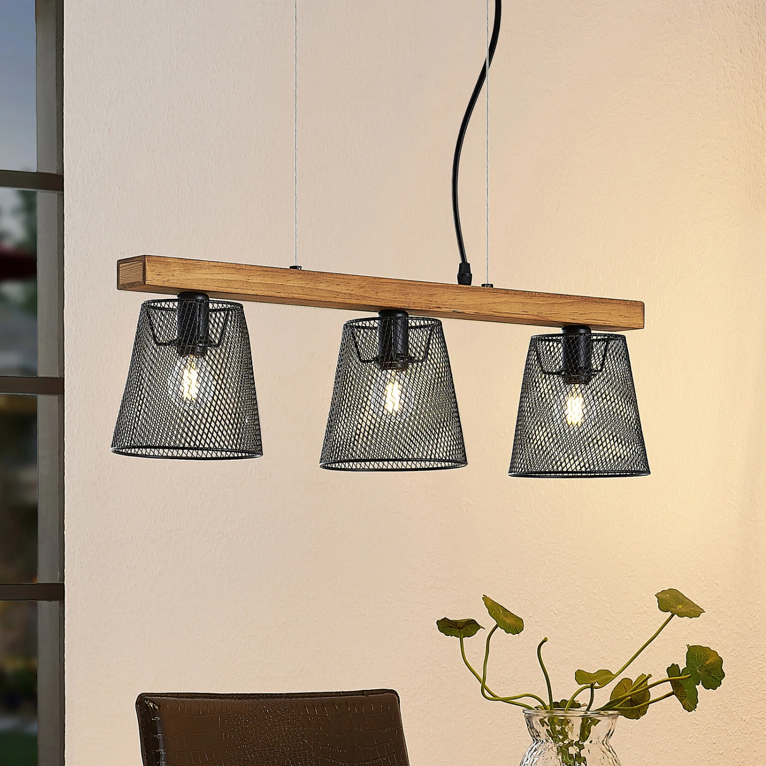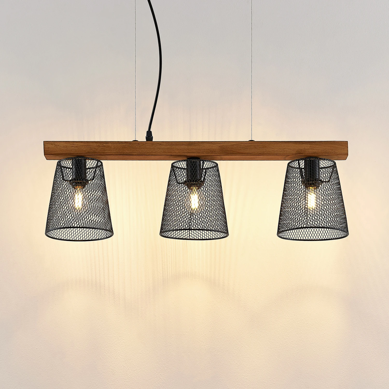 Dreiflammige Hängeleuchte Morlin mit Leuchtenschirmen in Käfigoptik