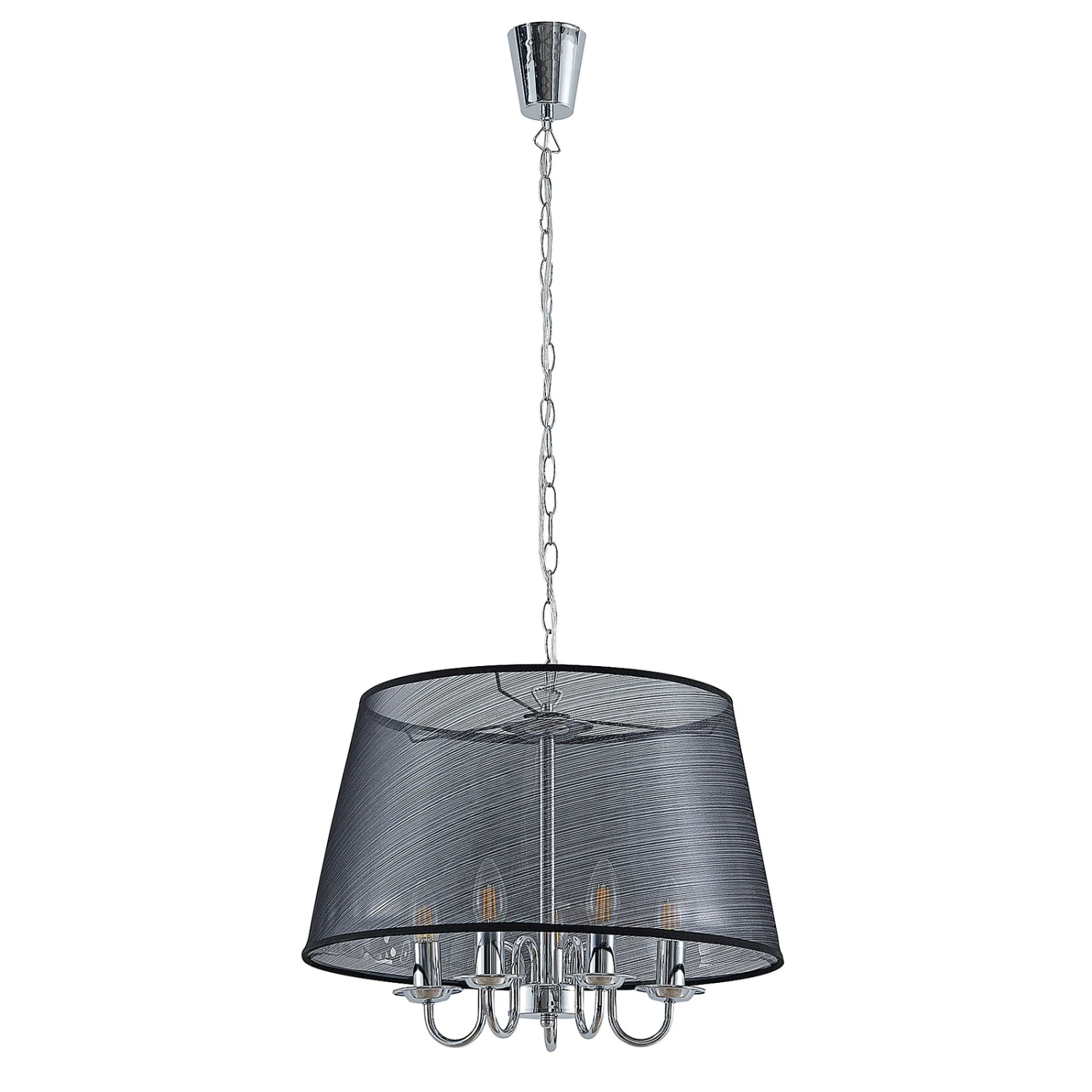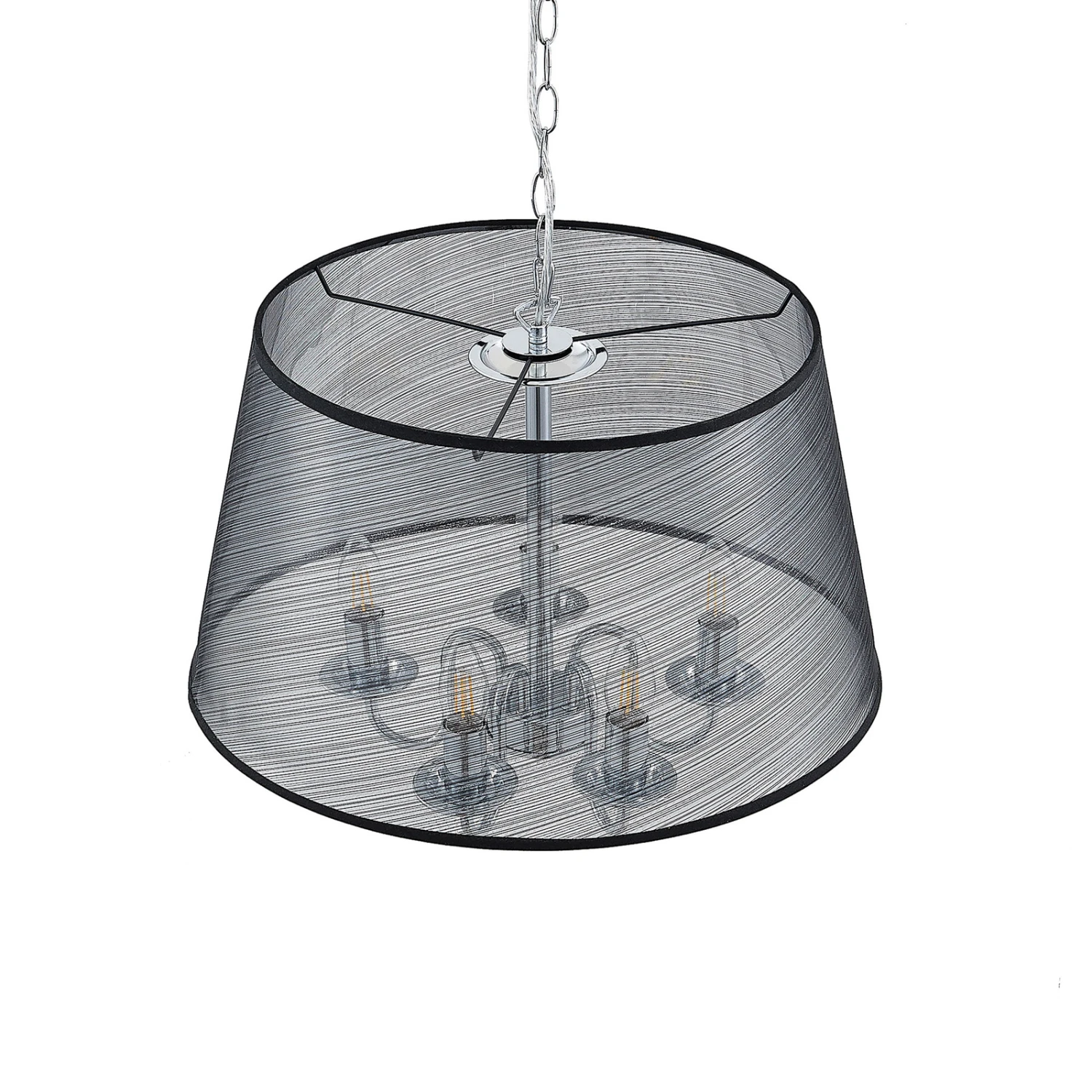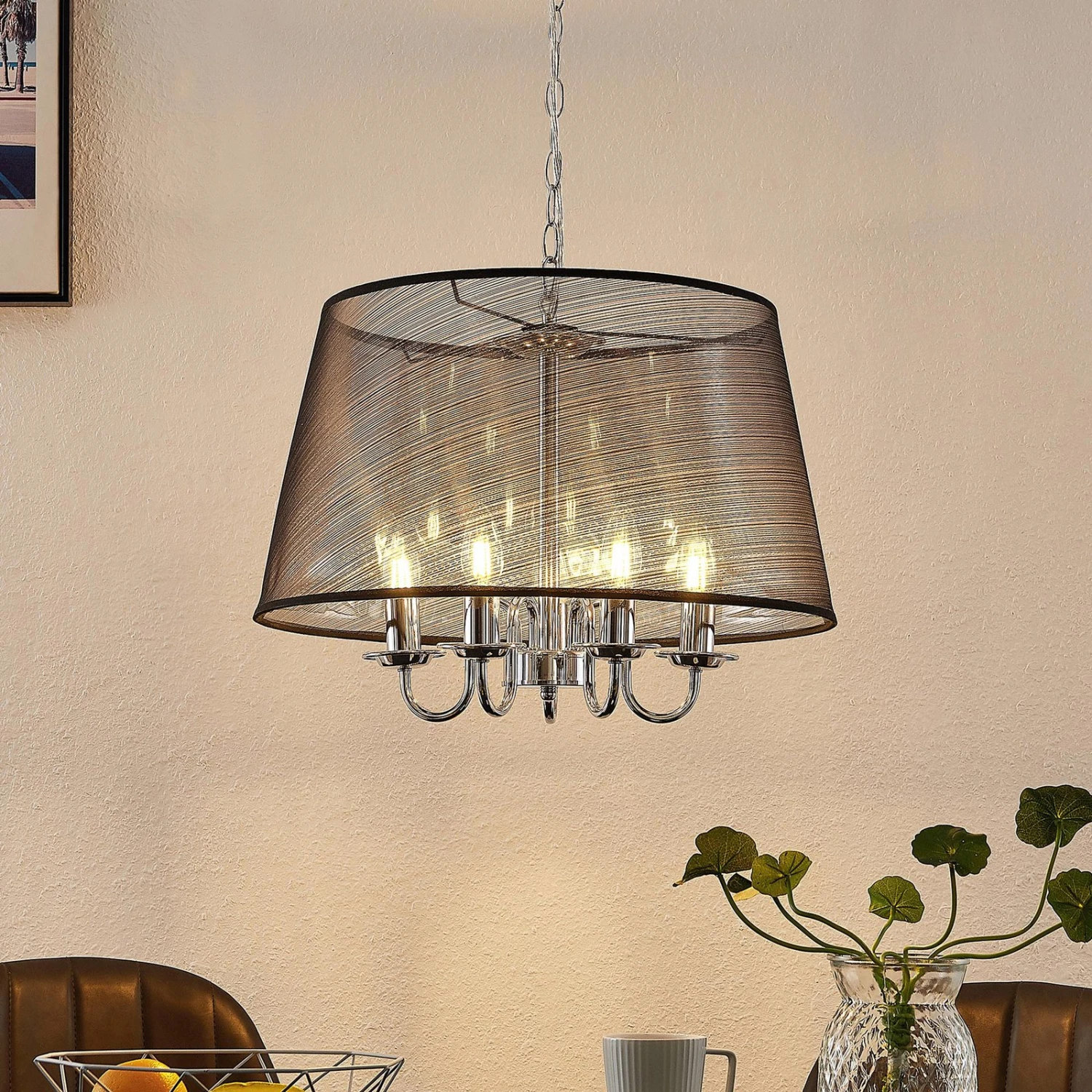 Durchscheinende Organza-Pendellampe Talisha in Schwarz und Chrom – stilvolle Esszimmerbeleuchtung