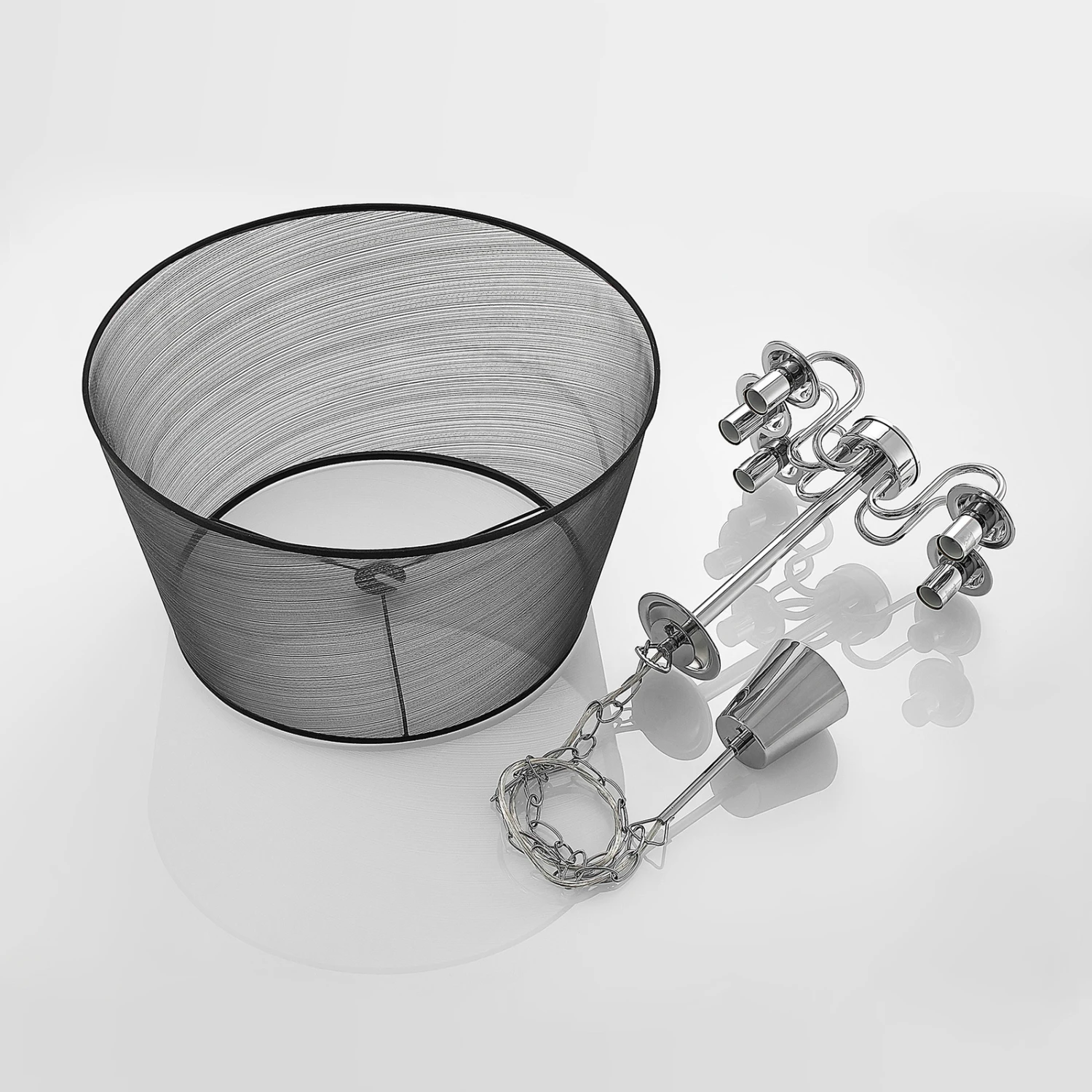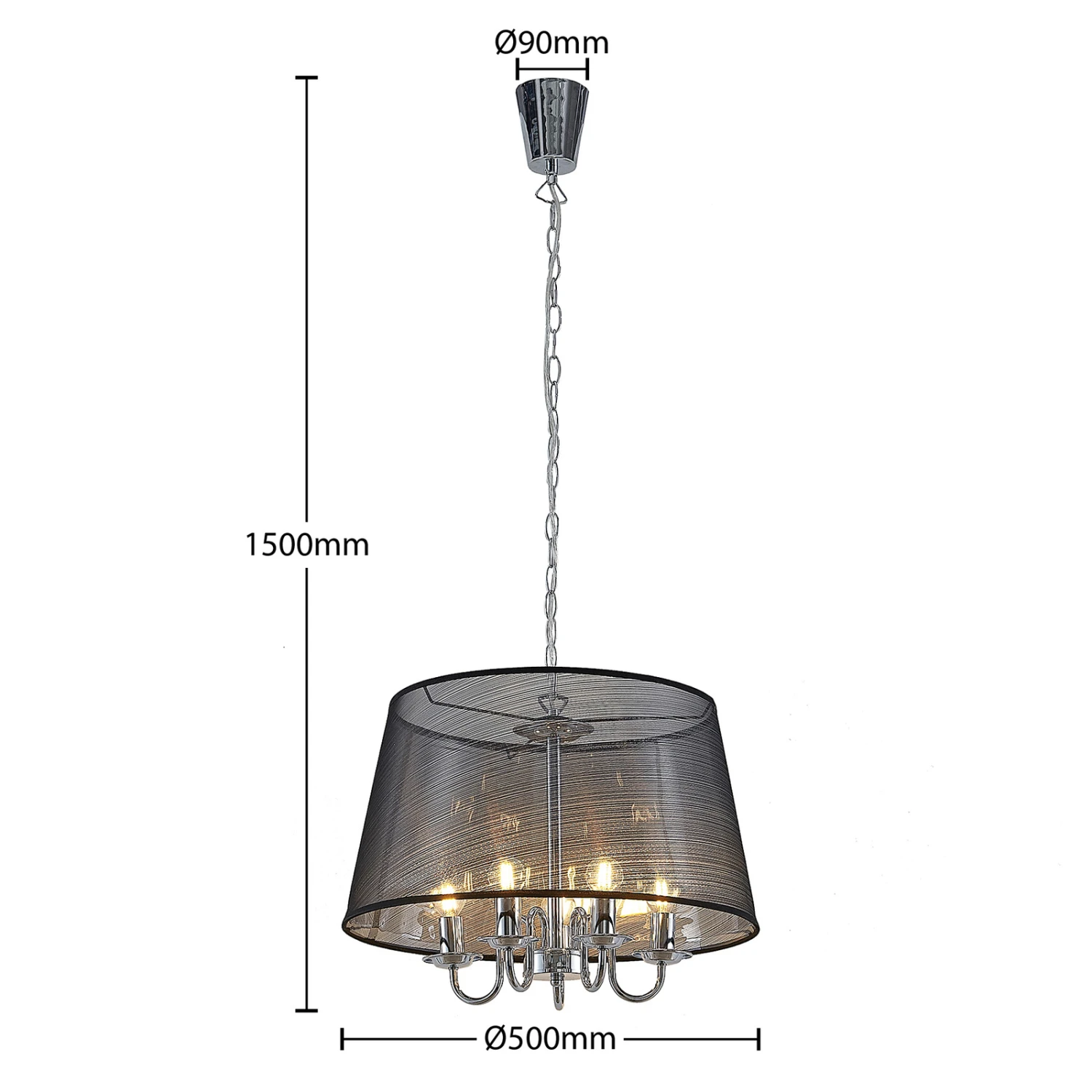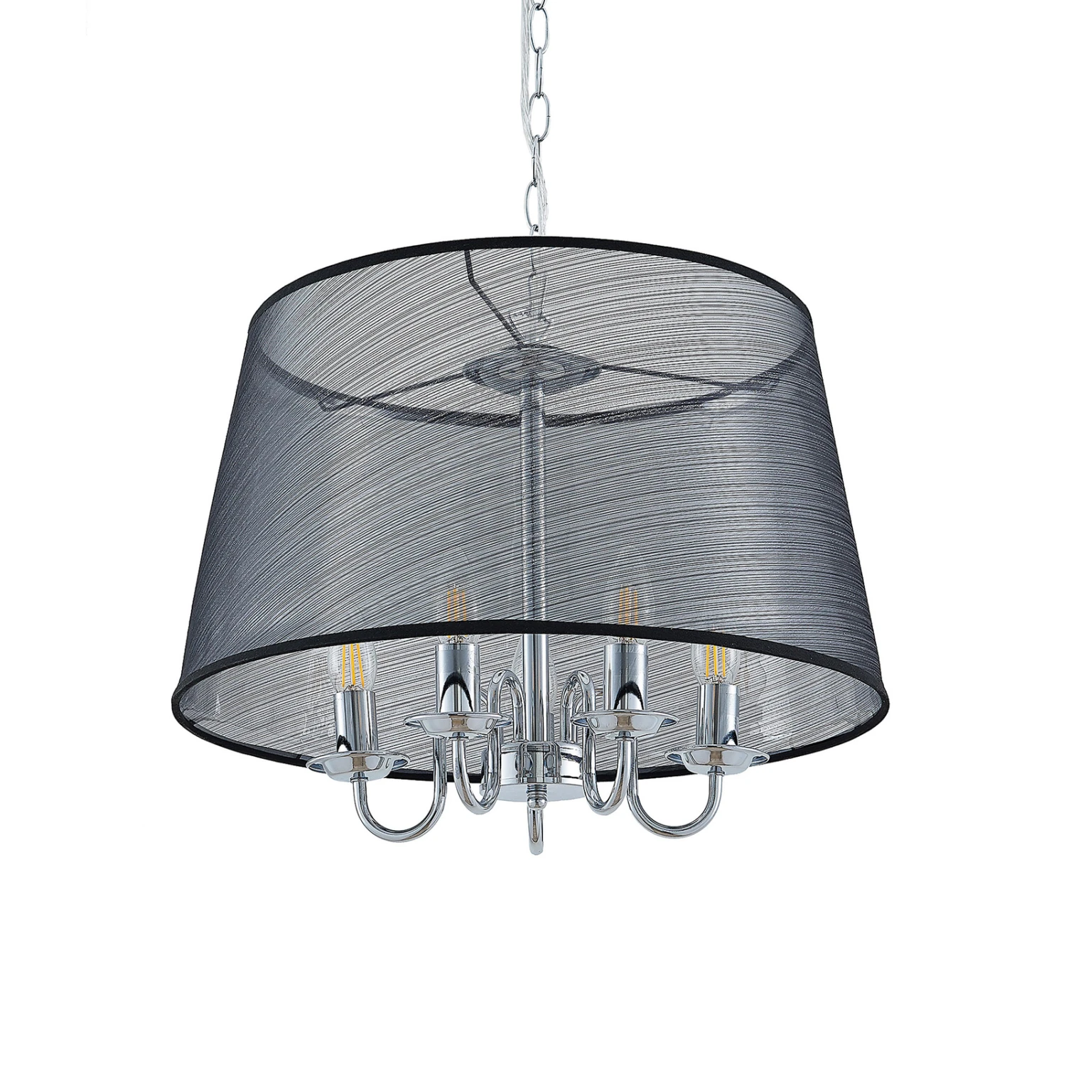 Durchscheinende Organza-Pendellampe Talisha in Schwarz und Chrom – stilvolle Esszimmerbeleuchtung