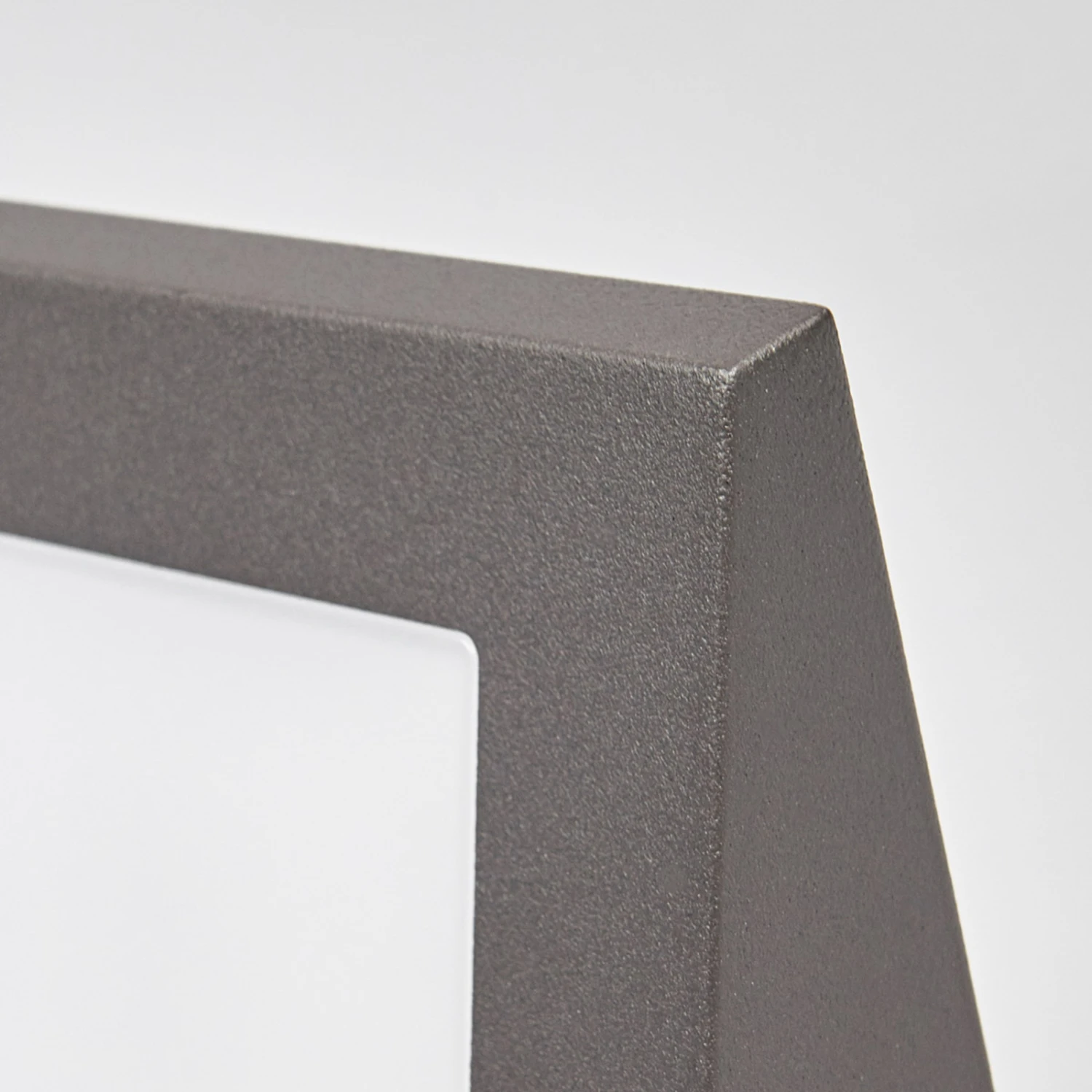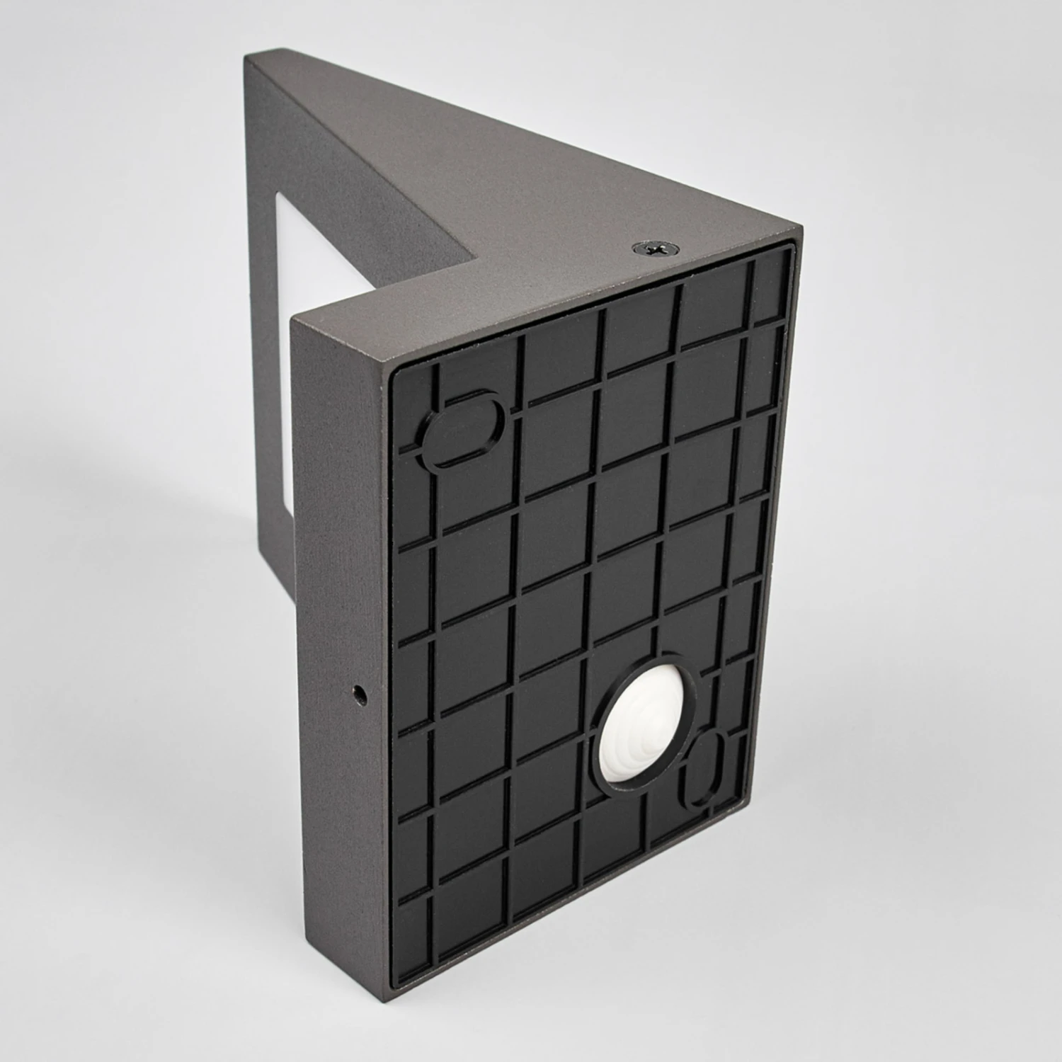 Die Wandleuchte Levvon ist aus Aluminium gefertigt, das in der Farbe Graphitgrau gehalten ist. Die weiße Blende der Leuchte ist aus Kunststoff gefertigt. Unter dieser Kunststoffabdeckung sitzen die LED-Leuchtmittel, die fest in die Leuchte eingebaut sind. Levvon ist mit einem praktischer Bewegungsmelder, der die Leuchte bei Bedarf einschaltet, ausgestattet und mit IP54 sehr gut für den Außenbereich geeignet.