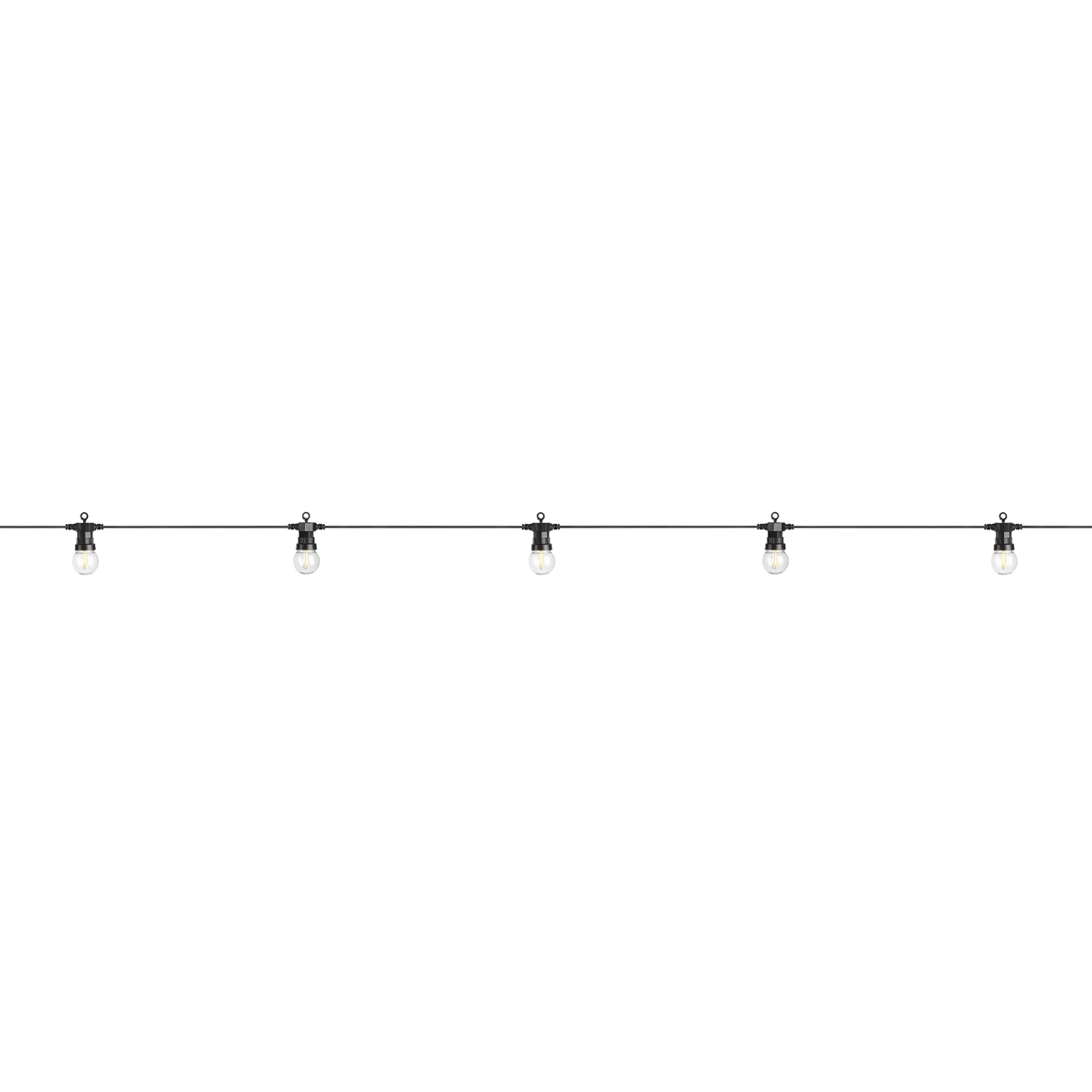 Um die Terrasse für eine Gartenparty vorzubereiten, eignet sich diese LED-Lichterkette Circular perfekt. Sie ist mit zehn Lichtquellen ausgestattet, die in warmweißem, dezentem Licht erstrahlen. Die Birnen sind wie kleine G45 Globelampen geformt. Aus Kunststoff gefertigt und mit IP44 geschützt, lässt sich die Lichterkette flexibel platzieren und dekoriert Elemente im Handumdrehen. Die klare Optik der Lichtquellen in Kombination mit Filamenttechnik verleihen ihr einen besonderen Effekt.
