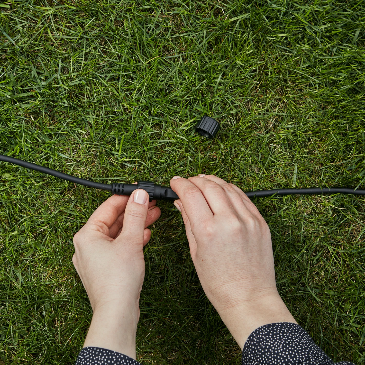 Um noch mehr Flexibilität beim Platzieren der verschiedenen Elemente des Garden 24V-Systems von Marksljöd zu erhalten, ist dieses schwarze Verlängerungskabel gedacht. Es überbrückt größere Abstände zu den nächsten Leuchten oder auch Steckdosen und lässt sich einfach und schnell montieren.