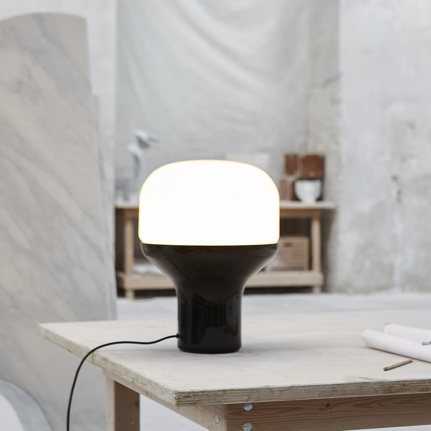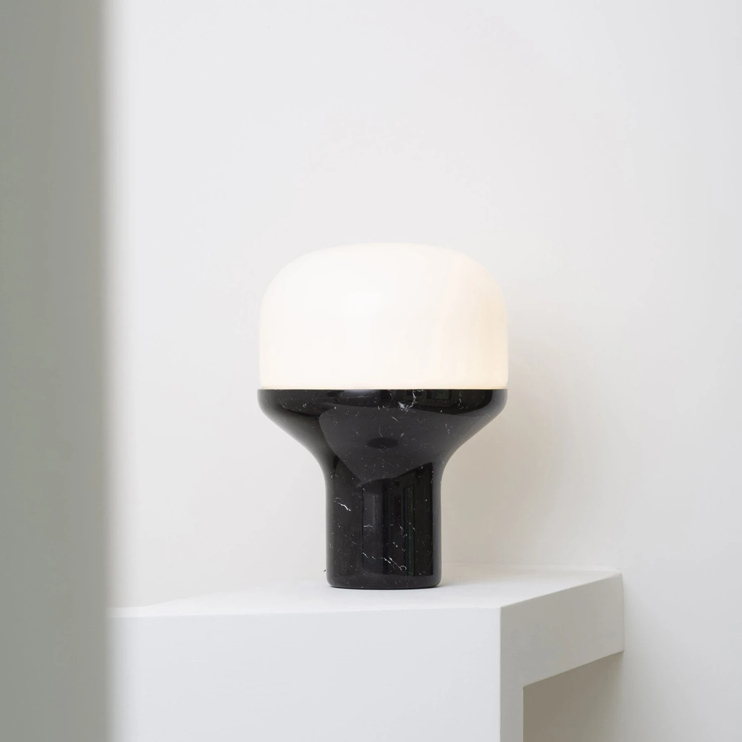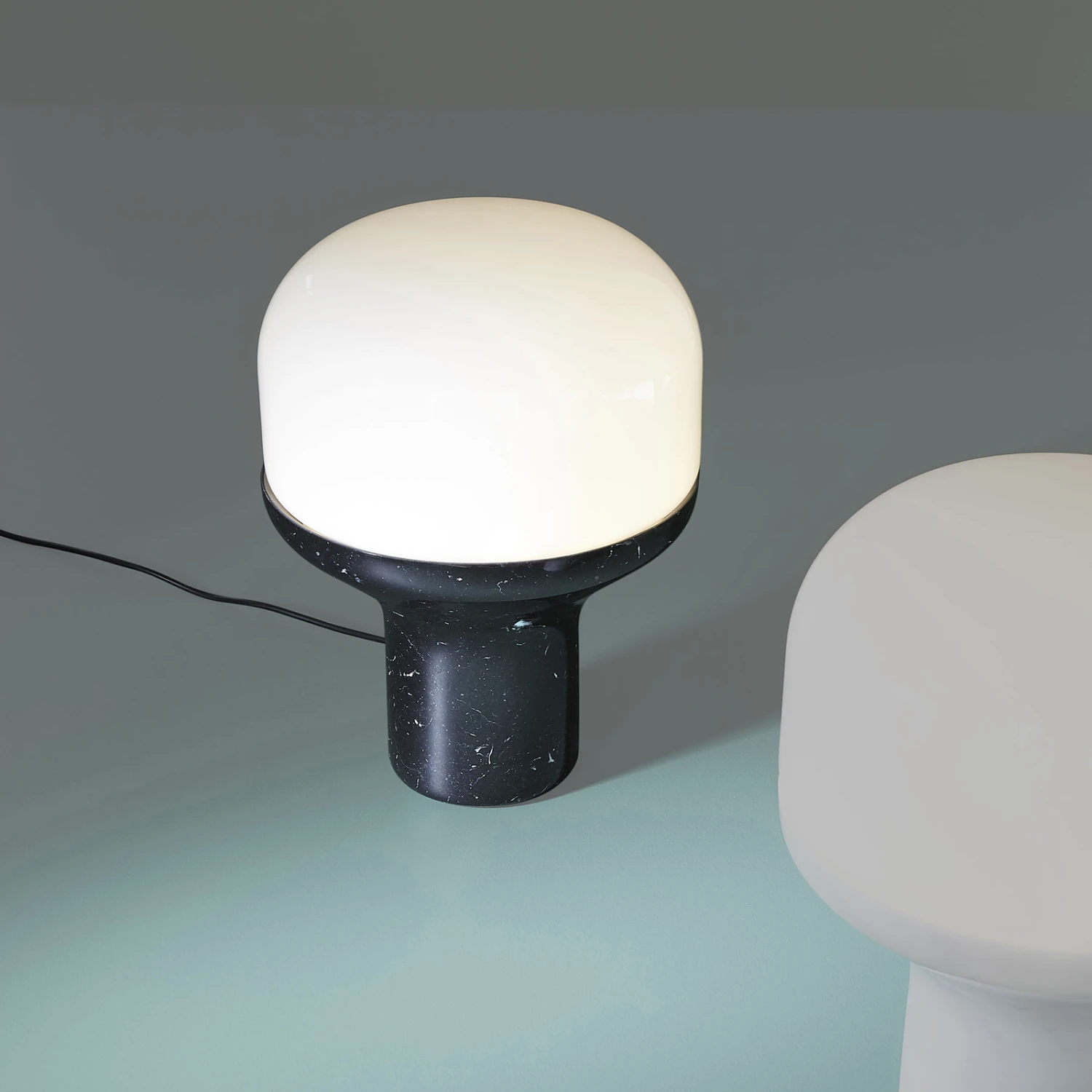 Runde Tischleuchte Delux mit Fuß aus Marmor und opalem Glasschirm
