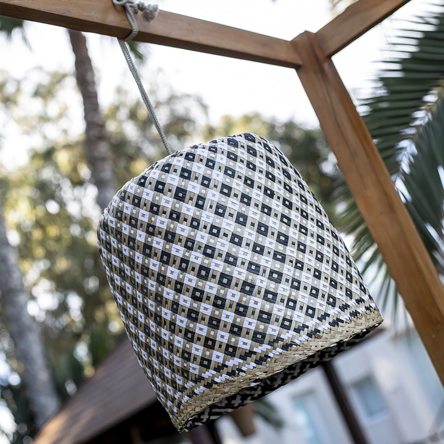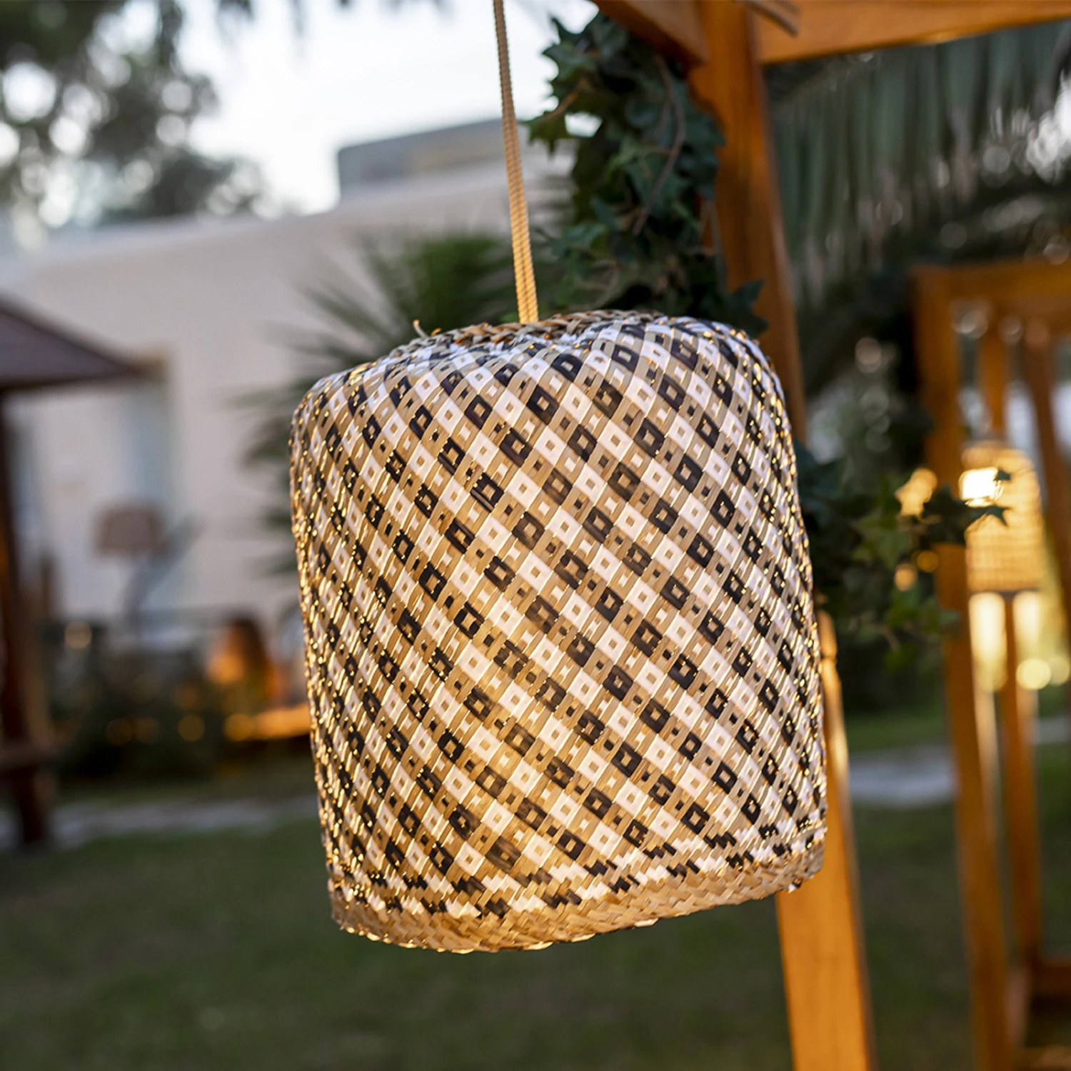 Dank des per USB-Kabel aufladbaren LED-Leuchtmittels kann die Hängeleuchte Benirrás flexibel platziert werden. Sie ist mit Schutzart IP54 ausgestattet und kann daher im Innen- und Außenbereich, beispielsweise auf dem Balkon, auf der Terrasse oder im Garten verwendet werden. Mit der mitgelieferten Fernbedienung lässt sich das Leuchtmittel dimmen. Der Leuchtenschirm wurde aus Seegras gefertigt und fällt durch sein besonderes Muster ins Auge.