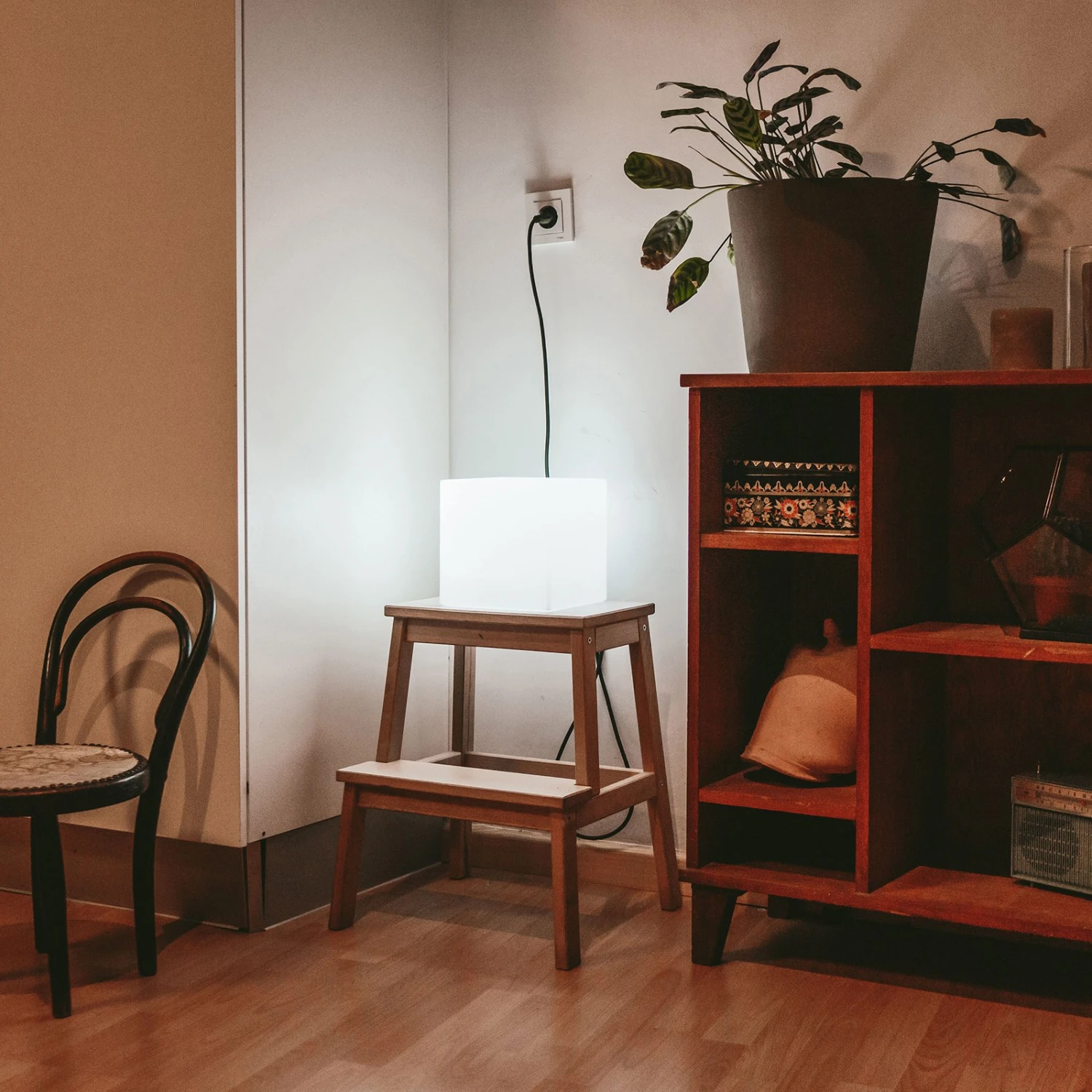Auf Tischen oder am Boden im Innen- und Außenbereich lässt sich die würfelförmige Leuchte Cuby platzieren. In dem Würfel, der wie fast alle Leuchten des spanischen Labels Newgarden aus widerstands- und uv-beständigem Polyethylen gefertigt wurde, ist eine E27-Fassung verbaut. Das mitgelieferte, auswechselbare Leuchtmittel (LED-Lampe E27 3 W, Lichtfarbe Tageslicht) erhellt den Würfel von innen, so dass durch das transluzente Material eine gleichmäßige Beleuchtung in die Umgebung strahlt. Die Leuchte ist mit einem 2 Meter langen Kabel mit Schuko-Stecker ausgestattet und mit Schutzart IP65 vor äußeren Einflüssen geschützt.