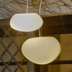Für den Außenbereich wurde die Hängeleuchte Petra konzipiert. Terrassentische oder auch Tische in gastronomischen Objekten erhellt die Leuchte blendfrei und gleichmäßig und ist außerdem noch eine tolle Dekoration. Der Schirm der Leuchte besteht aus transluzentem Polyethylen, einem recycelbaren und uv-beständigen Kunststoff, der auch widerstandsfähig gegen extreme Temperaturen ist.