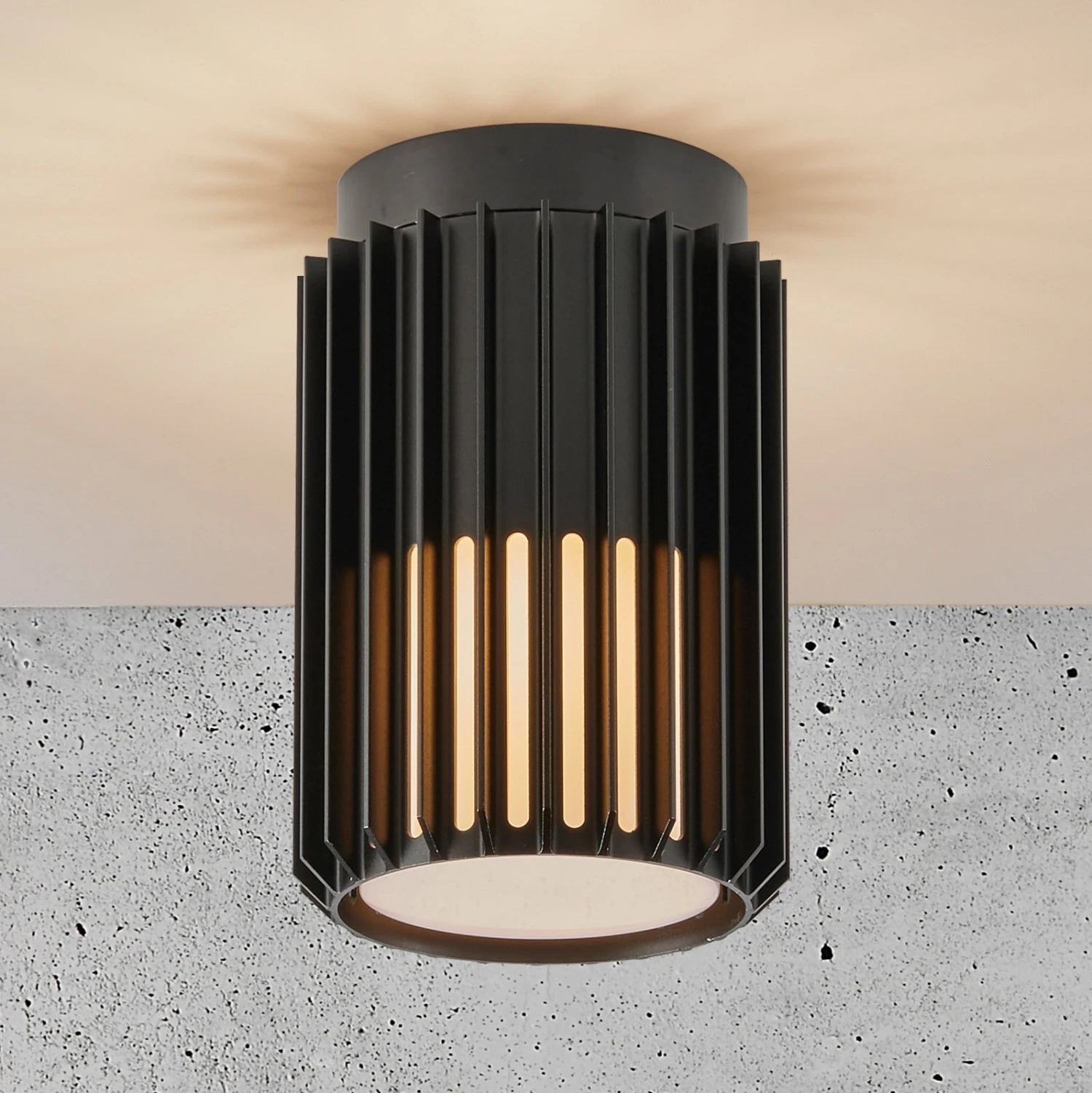 Aus gehärtetem, eloxiertem Aluminium besteht die Deckenleuchte Aludra für den Außenbereich und die Leuchtmittel-Fassung ist mit einem Plastikdiffusor vor Wind und Wetter geschützt. Die Serie ist rund gestaltet und durch feine Lamellen scheint das Licht im unteren Teil in alle Richtungen und bietet praktisches und innovatives Orientierungslicht. Die Gestaltung der Leuchte stammt von dem renommierten Jacob Jensen Design und wird von Nordlux aus Dänemark gefertigt.