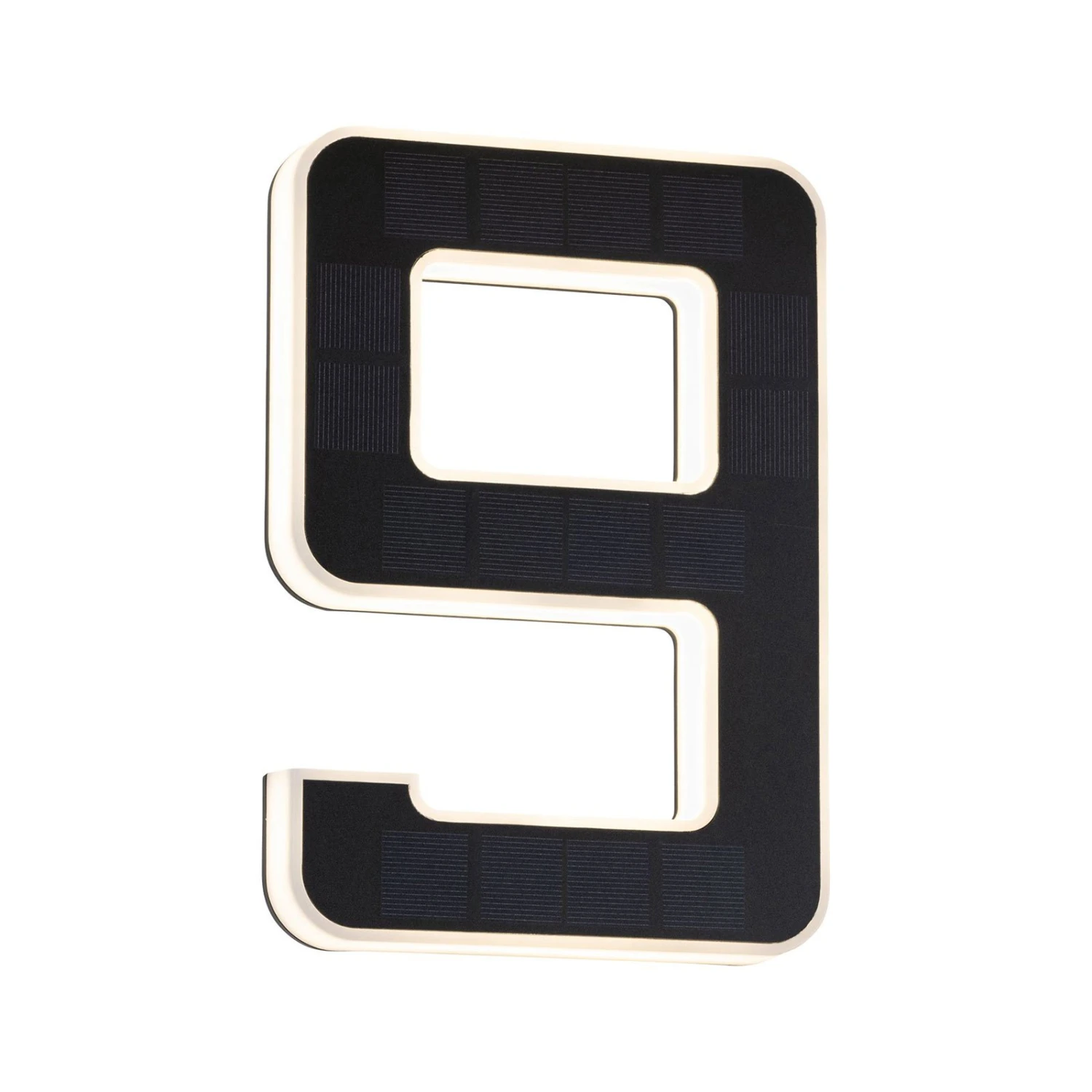 Outdoor-Solar-Hausnummer in Schwarz mit warmweißer Beleuchtung