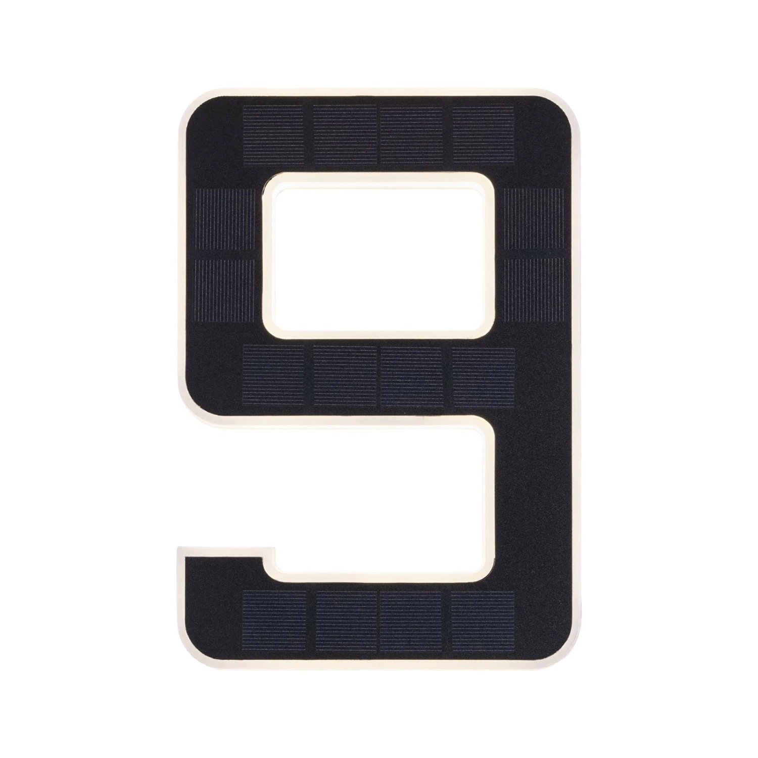 Die Solar-Hausnummer ist mit einem unsichtbar in die Ziffer eingearbeiteten Solarmodul bestückt, das den integrierten, wechselbaren Akku am Tag auflädt, so dass die leuchtende Hausnummer völlig unabhängig von einem Stromanschluss an der Fassade, an der Grundstücksmauer oder jedem anderen Ort angebracht werden kann. Sobald es dunkel wird, wird die Hausnummer durch die integrierten, warmweiß leuchtenden LEDs indirekt beleuchtet. Das Licht strahlt seitlich durch die satinierte Umrandung der Ziffer.