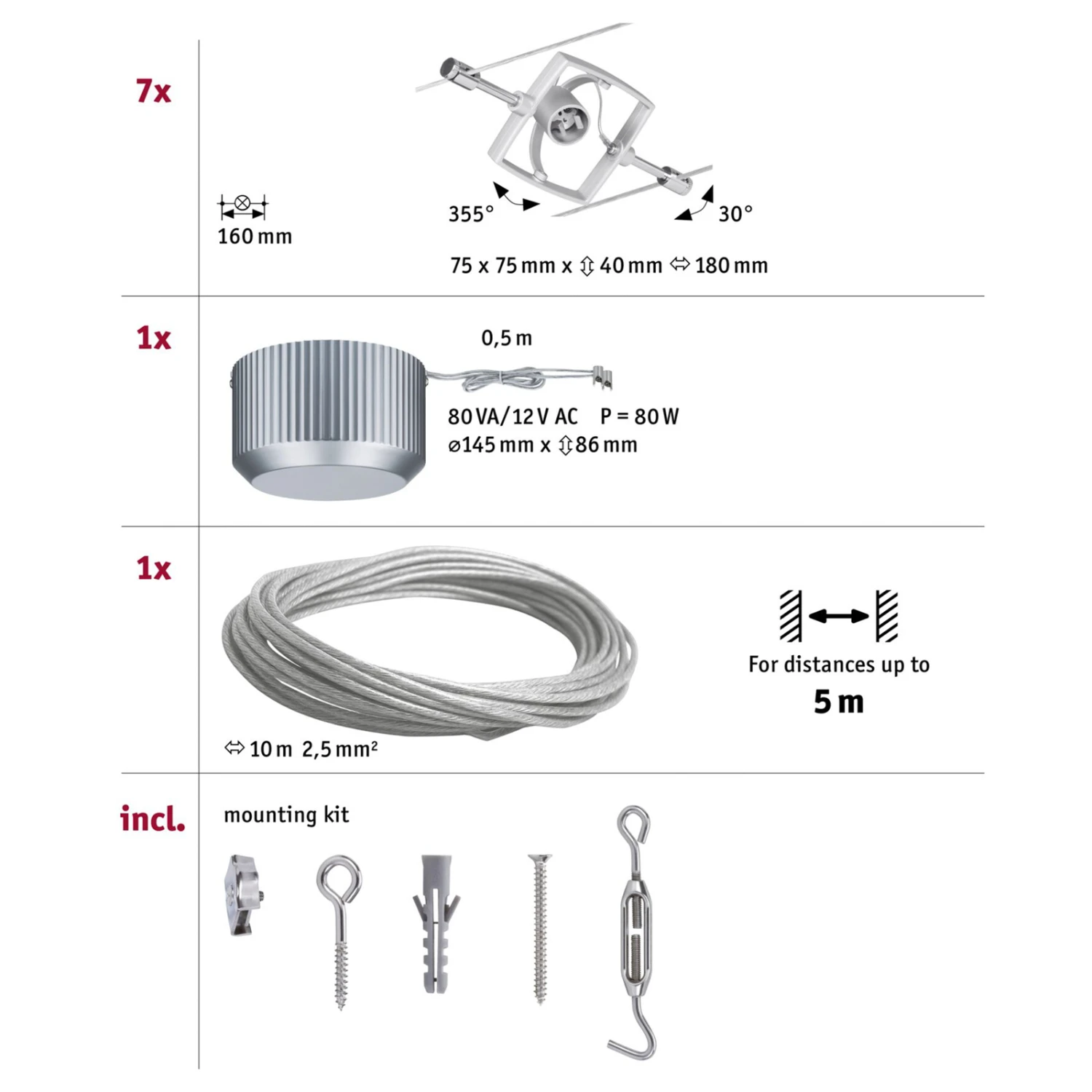Siebenflammiges Seilsystem Wire Mac II in Chrom matt