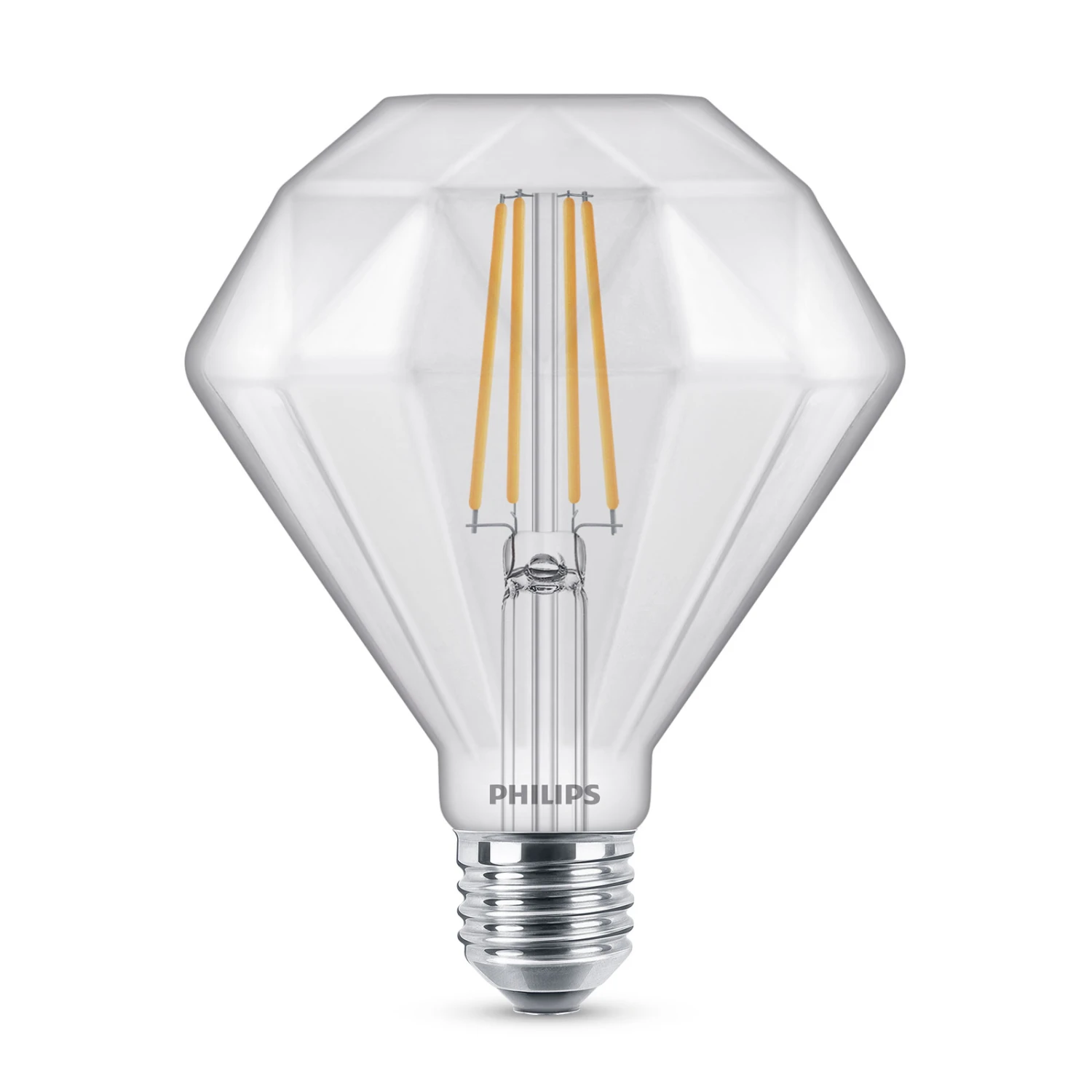 Das in Diamantform gestaltete LED-Leuchtmittel mit E27-Sockel ist dekorativ und energieeffizient gleichzeitig. Die Lampe spendet warmweiße Beleuchtung und ist dimmbar.