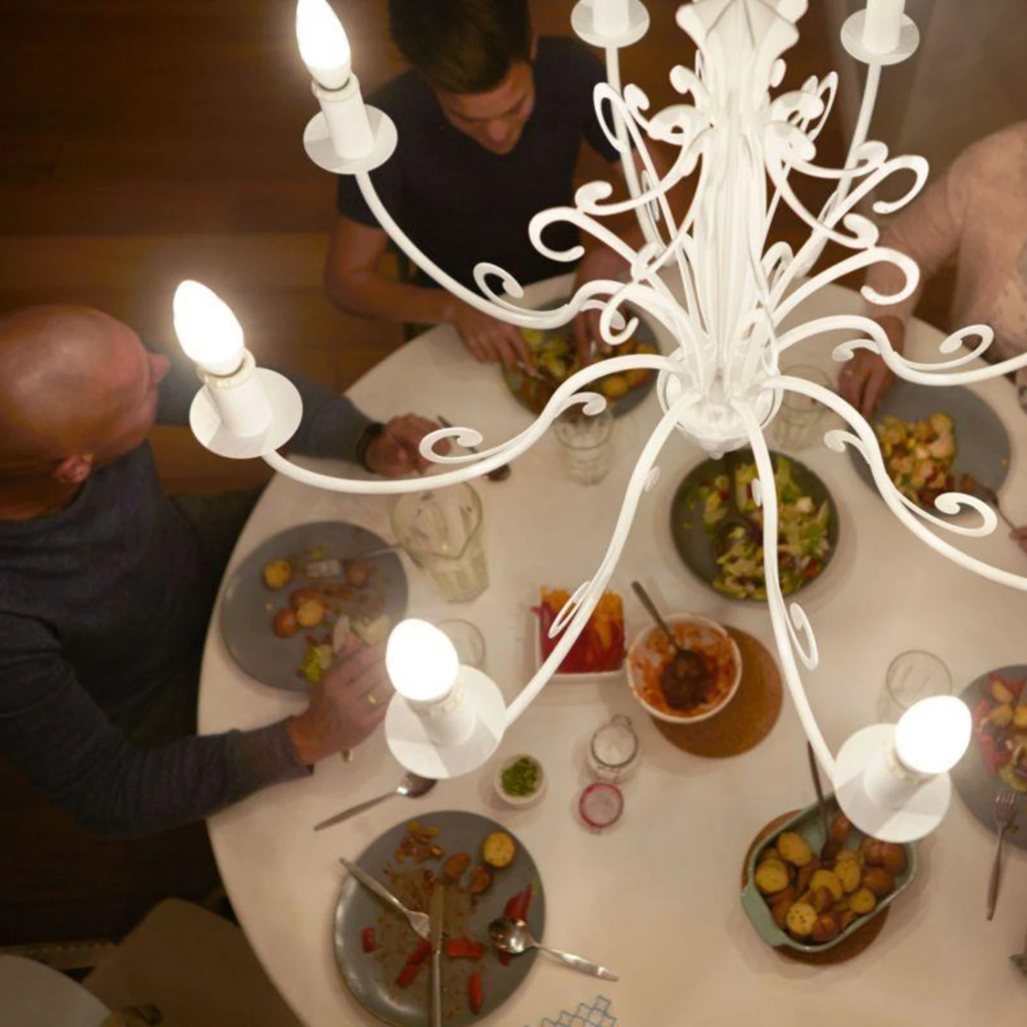 Diese LED-Kerzenlampe B35 mit E14-Sockel ersetzt herkömmliche Glühlampen mit 40W. Durch den matten Kolben wird das warmweiße Licht homogen zu allen Seiten ausgestrahlt.