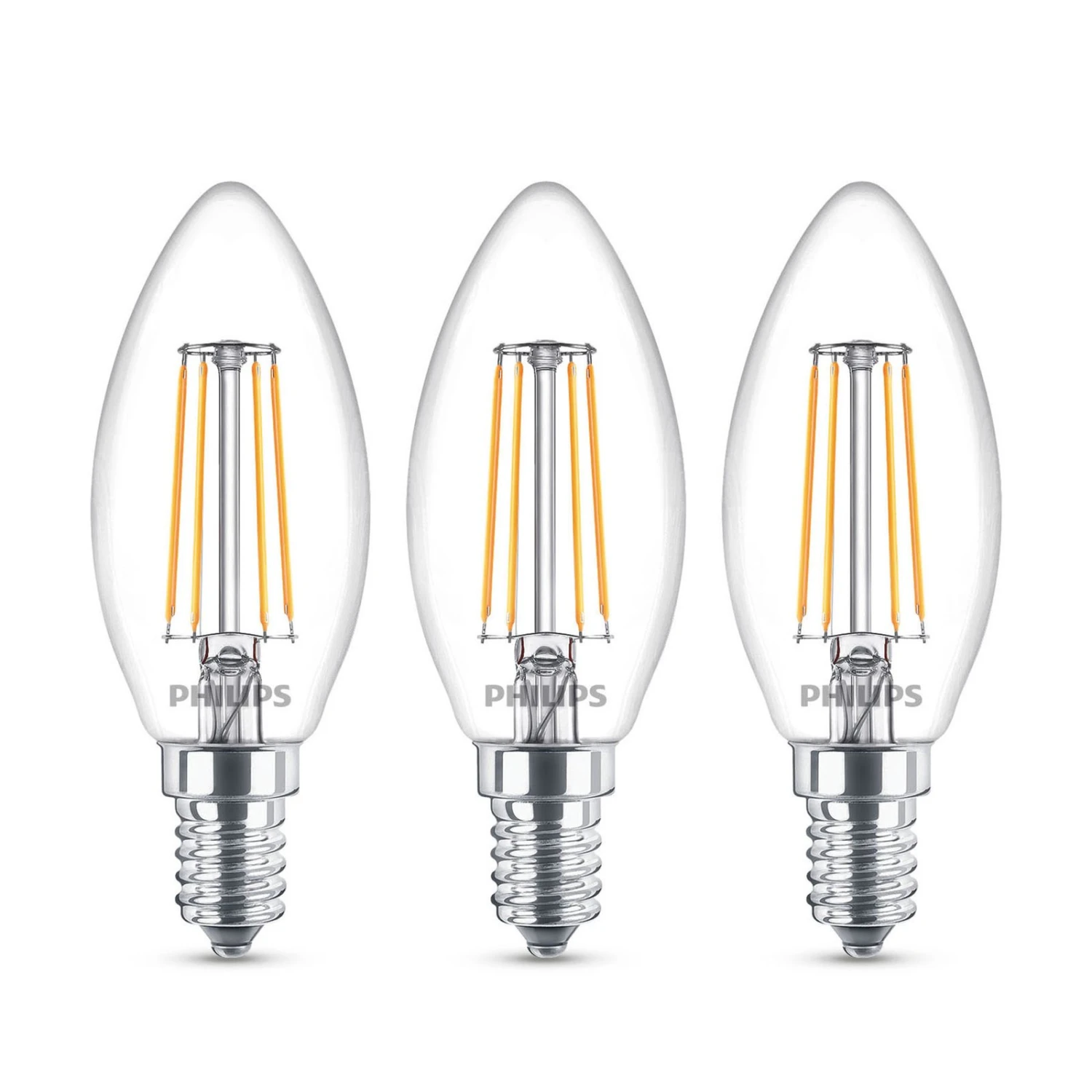 Im 3er-Pack – klare E14 LED-Kerzenlampe mit warmweißer Lichtfarbe, 4,3W