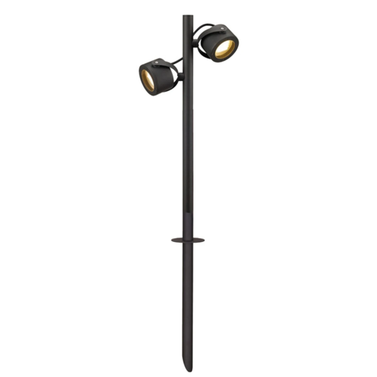 Der Außenstrahler Sitra wurde hochwertig aus Glas sowie Aluminium verarbeitet und ist besonders für den Außenbereich geeignet. Dabei glänzt dieser schöne Erdspießstrahler mit seinen verstellbaren Leuchtköpfen, die sich individuell an die Bedürfnisse des Benutzers anpassen lassen. Hinter den klaren Schutzgläsern kommen die Leuchtmittel bestens zur Geltung. Der Lichtspender sorgt dafür, dass ausreichend Licht zur Orientierung selbst bei Dunkelheit vorhanden ist. Mit dem Erdspieß lässt sich dieser Strahler also sehr flexibel an den verschiedensten Stellen im eigenen Garten einsetzen. Die Gesamthöhe beträgt dabei 107 Zentimeter und die Schutzart IP44 ist für den Außenbereich durchaus angemessen. Mit Erdspieß wiegt der Außenstrahler Sitra 1,8 Kilogramm.